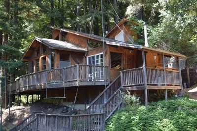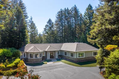 This home on over 2 acres is truly a special place. Great amount of privacy and a beautiful end-of-road setting overlooking distant mountain views. The kitchen and family room are combined in a large great room with hardwood floors and a cozy wood stove. Formal entry with big closet. There are two separate levels of decks, with access from both the kitchen and family room, both facing the breathtaking views. The upstairs bedroom features a private room with an oversized jetted tub and access to the upstairs deck. This wonderful home is a perfect place to entertain your guests and loved ones in a cozy atmosphere. Recently painted exterior, new carpets. The driveway has plenty of space for parking. Close to the famous Loch Lomond Reservoir, only 10 minutes to Downtown Felton and 20 minutes to Santa Cruz.