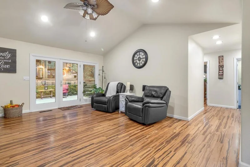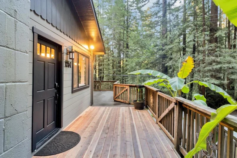 An entertainers paradise awaits in this charming home, featuring expansive backyard decking and a covered outdoor barperfect for crafting cocktails and hosting lively gatherings beneath the majestic Redwood trees. Winding pathways, tranquil seating nooks, and lush mature landscaping create a private retreat youll never want to leave. Inside, the thoughtfully designed floor plan offers a seamless flow between rooms, with expansive windows that flood the space with natural light and showcase the surrounding greenery. Vaulted ceilings enhance the spacious feel, while a cozy fireplace provides the perfect spot to unwind on chilly evenings. The recently renovated kitchen and dining area extend to an additional deck, ideal for relaxing under the stars. Located just minutes from downtown Feltons inviting restaurants like The Grove, scenic trails at Henry Cowell State Park, and the stunning beaches of Santa Cruzthis home blends tranquility with convenience.
