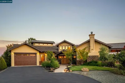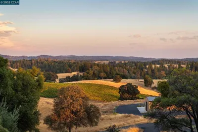 Escape to this stunning estate! This home is truly the epitome of a California contemporary luxury residence and sits atop just under 75 acres of gorgeous land. From the chef's kitchen, marble bathrooms, wainscoting, vaulted open-beam ceilings, grand formal entry, office, and wine cellar, every detail has been beautifully addressed. The property is recreation friendly! With ample acreage for horseback riding, ATVs, hiking - or simply enjoy the private, panoramic sunset and city-light views. Green infrastructure, including a large solar array (roof-mounted and ground-mount), underground utilities, PG&E, well water, septic, and a backup generator for reliable, off-grid capabilities. The outdoor event space is framed by vineyards, a pond, rolling Sierra foothill vistas; it includes paver patios, lawns, electrical/water hook-ups (food truck friendly), ideal for weddings or other large gatherings. Guest casita (~1 bed/1 bath) configured for short-term rental or event hosting, fully furnished with mini-split HVAC and kitchenette appliances. Currently operating as a boutique winery with 5 planted acres of varietals with a turn-key winery facility. Call today for a private showing. Views: Ridge