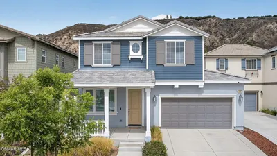 Spacious two story 3 bedroom+ office (optional 4th bedroom) with 3 car garage and beautiful mountain views. Features an eye catching semi-spiral staircase, formal living and dining rooms, and abundant natural light through large picture windows. The open kitchen and family room offer upgraded counters and a seamless flow for everyday living and entertaining. Spacious primary suite. Backyard offers two seating areas with firepit and large grass area. Unique 3 car garage with pull through for boat or extra parking. Great space, flexibility, and views all in one.Seller and broker/agents make no representations regarding the accuracy of square footage, lot size, permits, or property features. Buyer is responsible for independently verifying all information through inspections and qualified professionals.