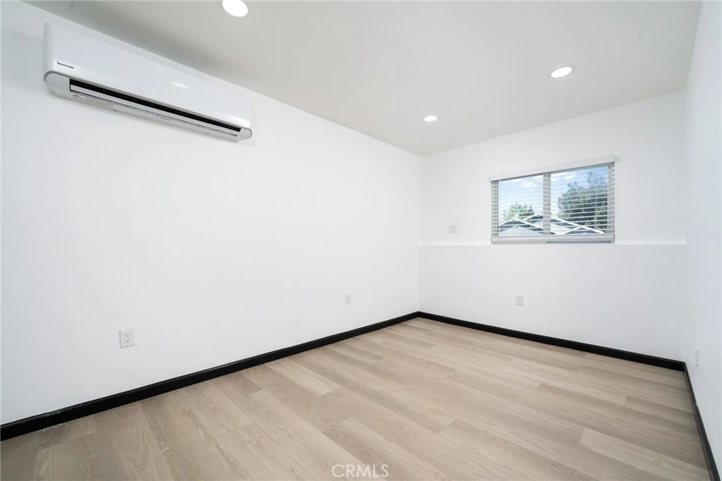 Beautiful brand new 1 bedroom, 1 bathroom ADU offering 440 sqft of modern living. This thoughtfully designed space features a bright open layout with recessed lighting, wood-style flooring, and a sleek kitchen complete with quartz countertops, stainless steel appliances, and custom cabinetry. The bedroom includes ample closet space, while the bathroom showcases contemporary finishes and a walk-in shower. Enjoy the convenience of stackable washer and dryer hookups, energy-efficient mini-split system for heating and cooling, and a private entrance. A perfect low-maintenance living option with a clean, modern feel.