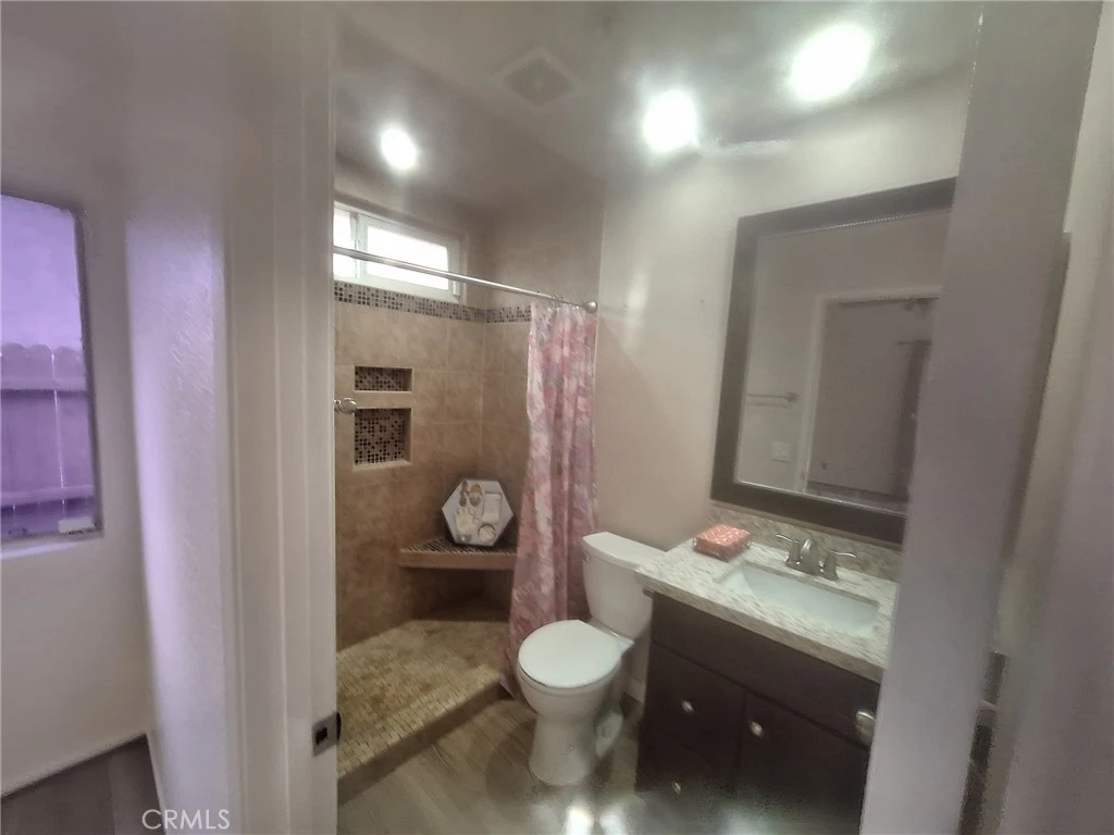 Charming Single-Story Home in Southridge - Move-In Ready with Solar! Welcome home to this beautifully refreshed 3-bedroom, 2-bathroom single-story residence in the desirable Southridge neighborhood of Fontana. Built in 1986 and thoughtfully updated throughout, this 1,109 sq ft gem sits on a generous 4000 sq ft lot and offers the perfect blend of comfort, modern finishes, and energy-efficient living thanks to its solar panels (installed 2023). Step inside to bright, open living spaces featuring brand-new luxury vinyl plank flooring that flows seamlessly from room to room. A large ceiling fan keeps the main living area cool and inviting, while oversized sliding glass doors bathe the home in natural light and open directly onto the relaxing backyard oasis. The updated kitchen boasts white cabinetry, granite-style countertops, a stainless steel dishwasher, double sink, and black electric range with overhead microwave, all overlooking the side yard for a cheerful vibe while you cook. Both bathrooms have been nicely remodeled: one features a spacious walk-in shower with stylish tile, built-in bench, and niche shelving; the other offers a full tub/shower combo with updated vanity and lighting. The bedrooms are generously sized with ample closet space and neutral tones, making them easy to personalize. Outside, the fully fenced backyard is a true highlight. Enjoy a large area of artificial turf bordered by attractive block retaining walls, a covered patio with sturdy columns, and plenty of concrete slab for dining, lounging, or play. The side yard provides extra storage and utility space, while the front offers classic curb appeal with a 2-car attached garage