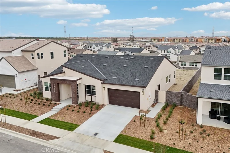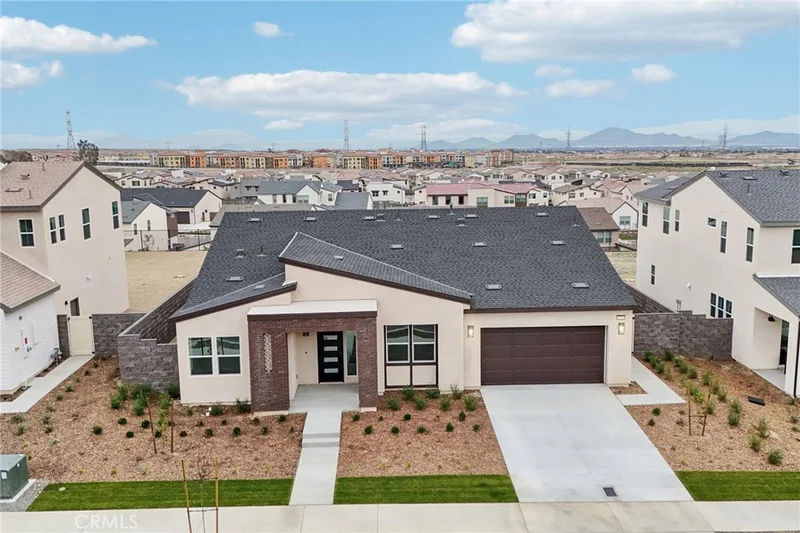 This single story was designed with modernism in mind and you see it before you even get out of the car! Offering 2,375 SqFt of living space with 4 bedrooms and 3 bathrooms the home rests on A QUARTER ACRE FLAT LOT WITH VIEWS! Open and airy with high ceilings and recessed lighting to balance the warm laminate wood flooring throughout the main living spaces. Down the hall is the fireplace-warmed family room across from the kitchen complete with Samsung stainless steel appliances (REFRIGERATOR INCLUDED!), Moen faucet, soft-close white shaker cabinetry, quartz counters and a spacious pantry. The conveniently located laundry room COMES WITH A WASHER AND DRYER as well as a utility sink adding true everyday practicality. The primary suite fills with natural light and is anchored by a spa-like bath featuring a large Roman soaking tub and a walk-in shower. The backyard is a blank canvas with forever views and ready for your imagination -- jacuzzi, garden, outdoor kitchen? The exclusive community of Narra Hills is resort-style living -- a gated, master-planned community set on over 100 acres and backing up to the San Bernardino National Forest, offering sweeping valley and mountain views. At the heart of the community is a resort-caliber rec center: sparkling pool, relaxing cabanas, and a great room with a catering kitchen perfect for gatherings. You can break a sweat in the fitness studio or on the pickleball courts, roast s’mores around a fire-pit lounge, or host a barbecue in the shaded pavilions. There are playgrounds for the kids and even dog parks for your furry family members! Living here feels like an elevated retreat, but with the convenience of being just minutes from shopping, dining, and outdoor recreation.