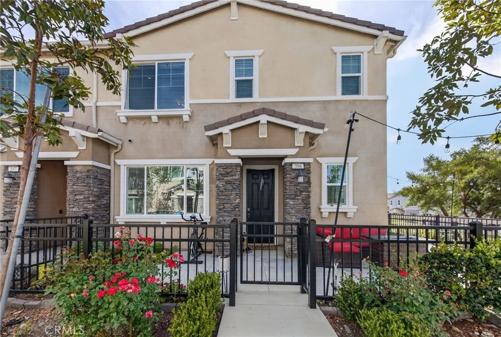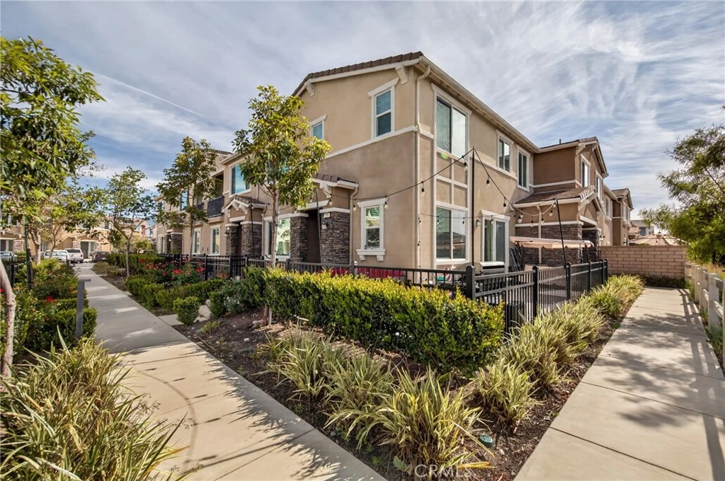 Honey Stop the car — your new home awaits at 16502 Casa Grande #356 in the coveted Woodbridge at Gabion Ranch community of North Fontana. This rare corner residence (Residence 5) offers sweeping mountain and city views and 1,826 sq. ft. of thoughtfully designed living space with 3 bedrooms, 2.5 baths and a large upstairs loft. Enter through a private, fully enclosed wraparound porch into an open main level featuring a spacious living room, dining area and kitchen with a large island, recessed lighting, upgraded flooring and a slider to the rear patio. Downstairs also includes a convenient powder room and direct access to the attached two-car garage, finished with epoxy flooring and a Tesla charging station. Upstairs you’ll find a generous loft ideal for a home theater, laundry room, two well-sized bedrooms and a full bath on the north side. The primary suite on the south side boasts a separate tub and shower, walk-in closet and dramatic city views. Bedrooms are carpeted with upgraded flooring in the hall and loft. Comfort and efficiency features include central air and heat, a whole-house fan and a Solar 20/20 plan providing a 20% discount on electricity. The expanded wraparound patio and new slab increase usable outdoor space—perfect for kids, pets or relaxing outdoors. Exceptional HOA-maintained grounds with nearby community amenities: pools (one within a short walk), dog park, playground, splash park, clubhouse and sports courts. Convenient North Fontana location with easy access to the 210 and 15 freeways, schools, shopping and services. Schedule your showing today — this one won’t last.