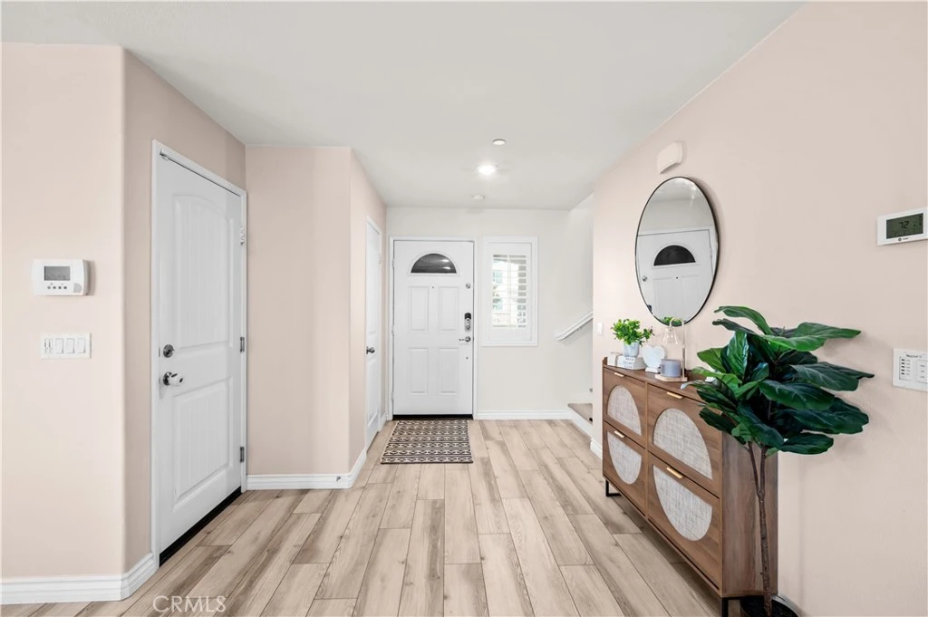 Welcome to this beautifully upgraded 3-bedroom, 2.5-bath home built in 2017, where modern design meets everyday comfort. From the moment you step inside, you’ll notice the stylish finishes and thoughtful upgrades throughout. The heart of the home is the stunning kitchen, featuring sleek quartz countertops, a designer backsplash, and an ideal layout for both entertaining and daily living. Elegant luxury vinyl flooring runs throughout, complemented by upgraded 5-inch baseboards for a clean, modern look. Windows finished with classic boxwood shutters bring in natural light while adding timeless charm. Step outside to your private backyard retreat, complete with a covered Alumawood patio, LED lighting, and ceiling fans—perfect for year-round entertaining. A gated dog run with low-maintenance turf makes this home as functional as it is inviting. Additional highlights include solar panels, a whole house fan for energy efficiency, and a high-end security screen door designed for superior durability and peace of mind. The garage is equipped with convenient overhead storage racks, providing ample space to keep everything organized. Modern, efficient, and move-in ready—this home offers the perfect blend of comfort, style, and practicality. Don’t miss this incredible opportunity!