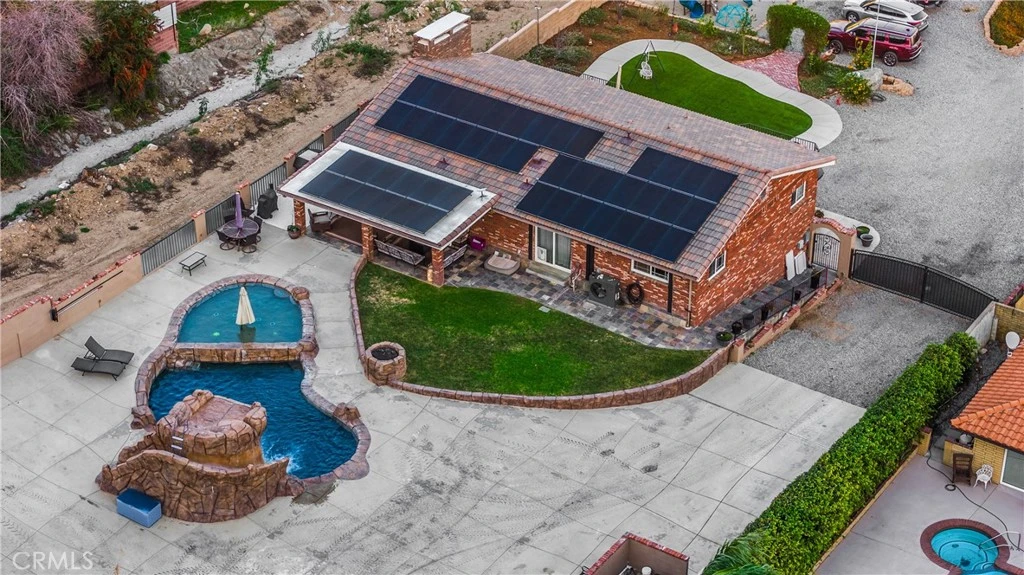 Welcome to a truly one-of-a-kind retreat in the unincorporated community of Lytle Creek, ideally located on the borders of Fontana, Rialto, & San Bernardino offering the perfect blend of mountain privacy, spacious living, and commuter convenience. Set against the foothills of the San Bernardino Mountains, this unique property feels like a private getaway while still providing easy access to Rancho Cucamonga, Fontana, surrounding cities, major freeways, shopping, and more. Inside, the home features a custom kitchen and a cozy living room with a fireplace, built-in bookshelves, and direct access to an outdoor deck—perfect for relaxing or entertaining. The downstairs family and dining room combo offers flexible living space, and an additional large family room presents endless possibilities as a game room, oversized primary suite, or potential additional bedrooms. Kitchen hookups are available in this area and have been virtually staged to showcase the potential. The oversized laundry room includes a custom sink, while the primary bedroom and bath provide a comfortable private retreat. The upgraded full hall bathroom is beautifully finished with brushed brass fixtures and Swarovski crystal knobs. A downstairs bathroom is handicap-equipped, featuring a premium walk-in tub with 27 jets, infrared lighting, and heated water functionality for year-round comfort. Step outside to your resort-style backyard, highlighted by a stunning rock pool and spa with grotto, waterfall, Baja shelf, lighting, fire features, and a pool slide—an entertainer’s dream. Additional outdoor amenities include a covered patio and a front automatic solar-powered gate for added privacy and convenience. Car enthusiasts, hobbyists, or business owners will appreciate the massive workshop/garage, equipped with 220V power, room for up to 6 vehicles, and a working car lift—a rare and valuable feature. The solar system is fully paid off, adding long-term efficiency and savings. This property offers a rare opportunity to enjoy Lytle Creek living—known for its open space, scenic surroundings, and outdoor recreation—while staying just minutes from the amenities of Fontana. A truly special home with flexibility, function, and lifestyle all in one.