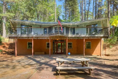 Your retreat awaits! Located amongst the soaring pine, cedar and fir trees in the beautiful town of Forest Ranch, the quality of craftmanship in this log construction home can be found throughout. The living room offers vaulted, exposed beam ceilings and a beautiful rock fireplace. The open and functional kitchen not only provides amazing views of the surrounding property but also flows seamlessly into the dining area and out through the living room as well. The butcher block island with vegetable sink, gas range and high-quality stainless appliances will all lend themselves perfectly to meal prep and the creation of many memories with friends and family. Walk the grounds and you will be amazed by the thought and planning that has gone into every part of the property... Expansive composite decking ensures that there is always somewhere to relax and enjoy the beauty around you. The detached garage provides additional storage and also houses the high-output propane generator that is on stand-by in the event of a power outage. The property is serviced by both a community well for inexpensive landscape irrigation and also its own private well with 5,000 gallon water storage tank for the home usage and fire protection. The dog run and kennel are as nice as you will ever find, with a fully secure boundary, concrete floors, composite wall material and dedicated grooming area. And powering all of this is an amazing 42 panel OWNED solar array, ensuring that your energy costs stay low far into the future. This one-of-a-kind property is truly a treasure! **Adjacent 5 acre vacant parcel is also for sale for $59,500 and could be purchased as a package with this property for added acreage and privacy