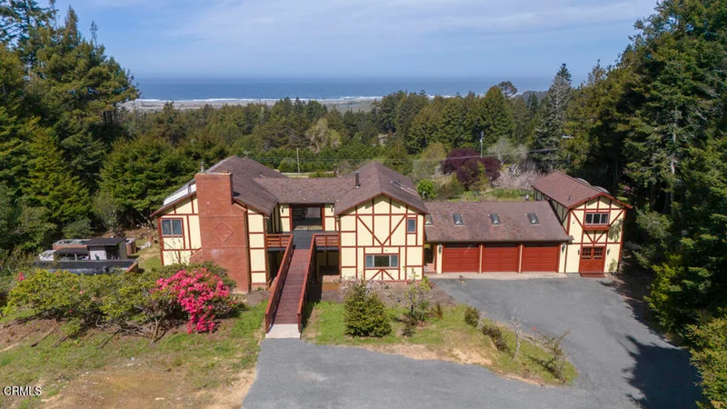 Fantastic potential for your family home or retreat center. Surround by redwoods and large orchard area. Miles of beautiful blue and white-water views overlooking Inglenook Fen area of the Mendocino Coast. Main home is 4600 square feet. Huge master bedroom and bathroom, sitting area with ocean views. Beautiful office or library and full bathroom. Living room with a wooden spiral staircase to the upper floor partial bathroom. Separate den or guest room, kitchen and dining room, laundry room, and yet another bedroom and bath on main floor. Partial basement with bath. Three car attached garage and then an art studio or shop and another bathroom. The grounds are beautiful, with walking paths and small ponds and bridges and hidden garden areas and fountains. One leads to the tree house in huge redwoods. This is the home of the original owner. 2.9 acres of unobstructed views. Orchard, and much more. You will want to spend some time in this beautiful home and grounds, and appreciate the quality craftsmanship and materials, and walk the grounds.