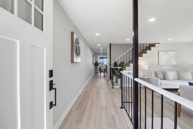Nestled in the beloved and well-maintained Bay Vista community, this beautifully extensively remodeled townhouse enjoys one of the best location in the complex facing an expansive park-like greenbelt. Light-filled and spacious, with four bedrooms and two and a half baths. The brand-new open kitchen features modern cabinets, stainless-steel appliances, quartz countertops. The dining area sits next to the kitchen, with sliding doors leading to a private back patio perfect for entertaining and relaxing. The home also features new LED recessed lighting, new remodeled bathrooms, a new craftsman-style entry door, new interior doors, new double-pane windows, new sliding glass doors, and new flooring throughout. A two-car garage with new finished walls and an epoxy floor is directly accessed from the back patio. A convenient laundry closet includes a new front-load washer and dryer. The inviting family room features a cozy fireplace and opens to a charming front porch with flowering trees. The spacious primary suite offers high ceilings, a walk-in closet, and lovely views of the greenbelt and sparkling pool. Ideally located near Gull Park, Bayshore Trail, top-rated schools, Beach Park Plaza, Ranch 99, Costco and with easy access to freeways.
