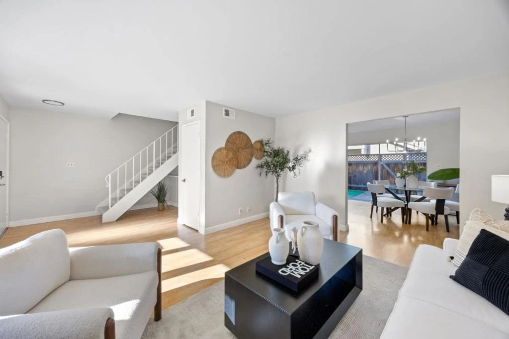 Step into this well cared for attached townhome where comfort and practicality come together. As you enter, you are welcomed into a warm living room anchored by a fireplace with gas starter, creating an easy space to relax or gather. Laminate flooring runs through the main level, offering both style and durability. The dining area sits just off the living room and flows naturally into the kitchen, which overlooks the rear patio. A sliding glass door opens to a private, well sized outdoor space that feels tucked away and is ideal for morning coffee or casual evenings at home. A conveniently located hallway laundry area adds to the everyday ease of living, along with a main level half bath for guests. Upstairs, you will find three comfortable bedrooms and two full bathrooms. The primary suite features its own en-suite bath with dual sinks, providing a functional and private retreat. Additional highlights include a detached two car garage, offering both parking and extra storage. Set within a city known for its waterfront paths, parks, and everyday conveniences, Foster City continues to be one of the most sought after places to call home.