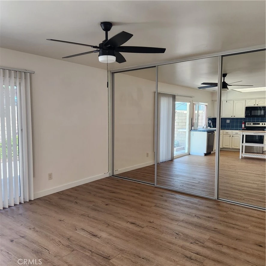 Exceptional end-unit townhome located in the highly sought-after Tiburon Community of Fountain Valley, ideally situated west of the 405 Freeway. Representing the largest floor plan in the community, this beautifully maintained residence offers an ideal blend of comfort, style, and functionality. The home features dual-pane windows, plank flooring on the main level, custom window coverings, and ceiling fans in all bedrooms and the family room. The expansive kitchen opens seamlessly to the inviting family room and is appointed with tile countertops and a full suite of appliances including refrigerator, dishwasher, built-in microwave, and stove. Designed for both everyday living and entertaining, the family room showcases custom built-in shelving and mirrored sliding doors concealing additional storage space. Oversized dual-pane sliding glass doors open to a generously sized private patio retreat featuring low-maintenance landscaping, charming planters, and block wall enclosure—creating the perfect setting for outdoor dining or relaxation. The detached two-car garage offers roll-up doors, washer and dryer, and direct access through the enchanting private patio for added convenience. Upstairs, the second level hosts four spacious bedrooms, including a generously sized primary suite complete with a walk-in closet and private en-suite bath. Perfectly positioned on a premium interior tract location away from street noise, this home enjoys tranquil views of a lush greenbelt directly in front. Residents of Tiburon enjoy resort-style amenities including three sparkling pools, clubhouse, playgrounds, and beautifully maintained grounds. Ideally located near premier shopping, dining, and major transportation corridors, this exceptional home offers the best of Fountain Valley living.
