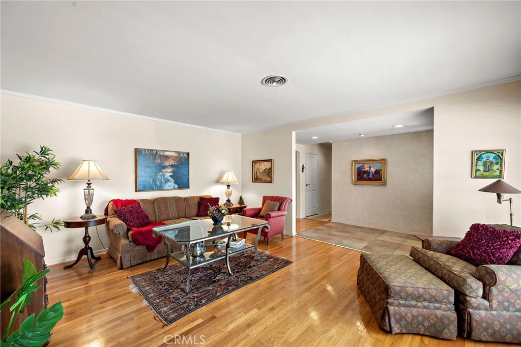 Absolutely charming and beautifully upgraded, this meticulously maintained single-story home is nestled in a quiet interior location within the highly sought-after Stardust tract, just steps to the neighborhood park and located in a top-ranked school zone. Boasting 3 bedrooms, 2 bathrooms, and a stunning garden-view sunroom, this home offers both comfort and timeless appeal. Gorgeous curb appeal welcomes you with a lush lawn, mature shade tree, rose garden, fragrant jasmine gracefully growing over the garage door, and a slate walkway leading to a custom front door with three panels of leaded glass and an operable sidelight for refreshing cross breezes. Step inside to discover rich hardwood flooring, French dual pane windows, crown molding, recessed lighting, raised panel doors, central A/C, solar, a whole house water filtration system, Tex-Cote exterior paint for lasting durability, and a tankless water heater. The elegant formal living room showcases a granite fireplace with handcrafted wood surround and mantel, creating a warm and inviting setting. The spacious family room and dining area flow seamlessly into the upgraded kitchen featuring granite countertops, breakfast bar, deep stainless sink, reverse osmosis water system, a convenient inset spice and oil nook, and an abundance of solid wood cabinetry with hand-blown glass display panels. Just off the kitchen is a convenient inside laundry room with additional pantry storage. A true highlight of the home is the solarium-style sunroom with tile flooring and walls of glass that frame lush backyard views, perfectly blending indoor and outdoor living and creating a serene retreat for relaxation or entertaining. The tranquil backyard features two flagstone-accented patios, soothing fountains, lawn, mature trees, and a variety of fruit trees and garden herbs including Anna’s apple, guava, orange, and cherimoya, along with African blue basil, bay laurel, spearmint, epazote, and vibrant bougainvillea—an ideal private oasis. Both bathrooms have been tastefully remodeled with tile flooring, custom vanities, and designer tile surrounds; the hall bath offers a tub/shower combo with multiple shower heads and linen storage, while the primary ensuite features a walk-in shower with frameless glass enclosure. This move-in ready home offers a rare combination of elegance, comfort, and peaceful living in one of the area’s most desirable neighborhoods—truly a place to call home.