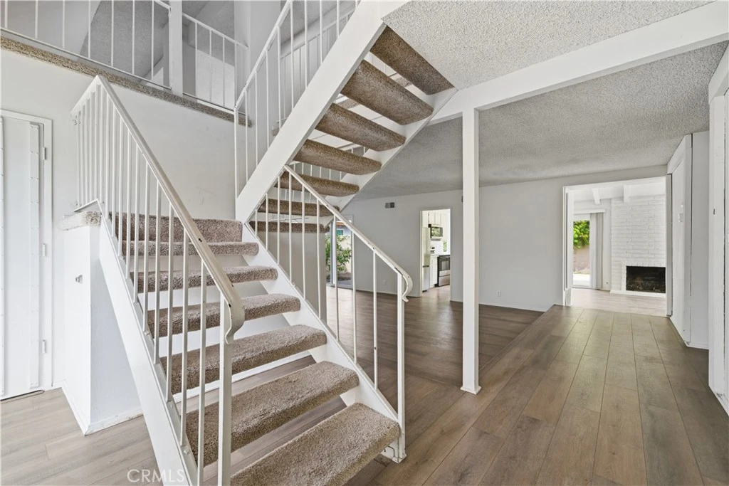 This charming single-family residence offers four bedrooms, 2.5 bathrooms, and a massive loft room ideal for a second family room, home office, or could be converted into more bedrooms. Recently retrofitted with all new vinyl windows and sliders throughout combined with updates made in 2024 provide a fresh clean slate to customize your dream home! Immerse yourself in the tasteful upgrades throughout, featuring waterproof luxury laminate wood plank flooring, natural color palette, and carpet throughout upstairs. The kitchen and bathrooms boast upgraded quartz countertops. The kitchen is complemented by brand-new stainless-steel appliances, large stainless-steel sink and faucet. Enjoy the spacious layout with generously sized rooms, including a master bedroom conveniently located downstairs. Step outside to a wrap-around backyard and a large front yard, providing ample outdoor space for various activities. The two-car garage is accommodating, with storage above, washer/dryer hookups and a handy storage nook built into the garage wall.