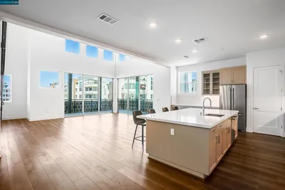 Absolutely Gorgeous ultra-modern two level corner unit!This Penthouse styled home with 3bedroom 3full bath. Vaulted ceilings, Very airy with lots of natural lights. Approximately 3203 sq feet living area. Media room and junior suite upstairs. Beautiful terrace with fireplace, Two balconies Tall penthouse windows, Tastefully upgraded Chef’s gourmet kitchen is thoughtfully designed with quartz countertops and oversized island, stainless steel appliances. Two car garage with sizable storage room. Outdoor gas fireplace. Just steps away from the community resorts style club house with fitness center outdoor event space.4500 SF pool. A prime location close to shopping centers, restaurants, and near Highways 680 and 880, along with easy walking access to Warm Springs BART station. MUST SEE!! DONT MISS THIS GEM!!