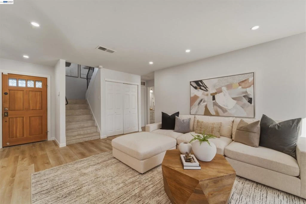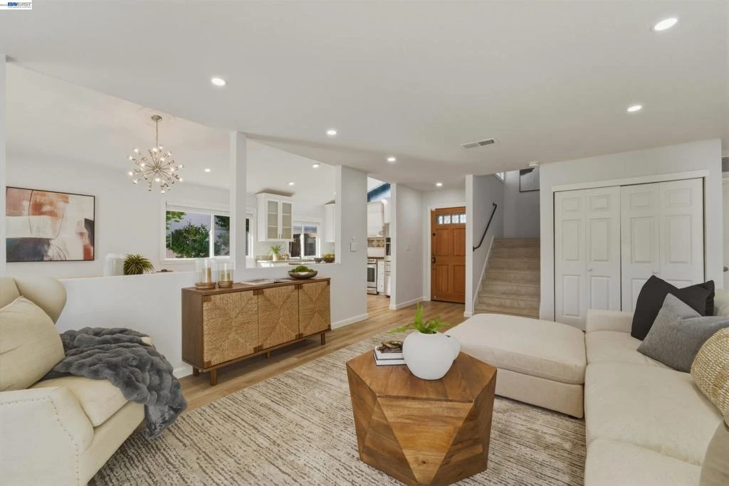 Beautifully upgraded home in Fremont’s desirable Lakes and Birds neighborhood. Bright, spacious home features 4 bedrooms and 2 baths. A nicely designed, open-concept layout seamlessly connects the living, dining and kitchen areas, ideal for both everyday living and entertaining. Spacious kitchen with 5-burner gas stove and granite kitchen island overlooks dining area and a living room with fireplace. Dining room opens to a flat backyard that has covered patio, artificial grass (thus low-maintenance) and a variety of fruit trees (orange, apricot and fig). Primary bathroom has steam shower for relaxing. New flooring (luxury vinyl plank and carpet) throughout home. Roof is less than 3 years old. All appliances included. Home combines functional design with a peaceful residential setting offering an easy, well-connected lifestyle in one of Fremont’s most sought-after neighborhoods. No HOA. Easy access to parks (walking distance to Sylvester Harvey Community Park), shopping and freeways.