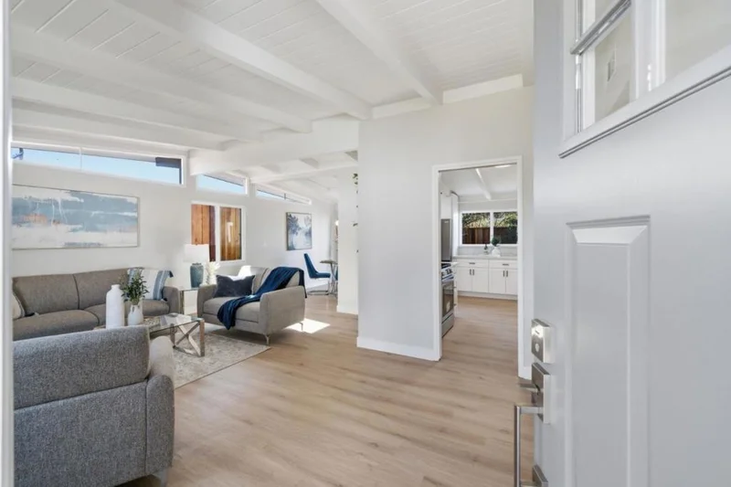 Not just a house, but a Home! Light-filled and updated home with mid-century modern architecture. New quartz countertops and tall cabinets in the kitchen. All new appliances included. Newer double pane windows, new doors, and new SPC Vinyl flooring throughout. Insulated roof and central heat pump (energy-efficient heating and cooling), less than 1 year old. Updated bathrooms. Very private backyard due to the outbuilding, taller fencing, and mature landscaping, which includes fruit-bearing pomegranate and Meyer lemon trees. The efficient floor plan is surprisingly spacious, however, additional room is available in the 10 x 12 Tuffshed office, upgraded with concrete fiberboard siding, finished & insulated interior walls, windows, skylights, and electrical. And...we have a garage that is actually still a garage! The location has minimal traffic compared to other streets in the area due to the "L shaped" street. Pride of ownership shows. Make this YOUR next HOME!