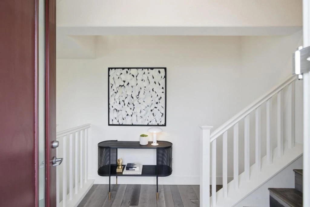 Welcome to this Beautifully Upgraded 6-Year-New Townhome in Fremont's Sought-After Innovation Community! This 2-bedroom, 2.5-bath home features dual en-suite bedrooms and a bright, open floor plan with high ceilings, recessed lighting, and abundant natural light. The modern kitchen offers quartz countertops, tile backsplash, gas stove, stainless steel appliances, and an oversized island with bar seating. The spacious primary suite includes a walk-in closet and a well-appointed bath. Thoughtfully upgraded with $35K in improvements, the home features waterproof luxury vinyl plank flooring (except stairs), white cabinetry, triple-pane windows facing Fremont Blvd (double-pane elsewhere), and a tankless water heater. Additional highlights include a 240V Tesla charger in the side-by-side 2-car garage, smart home system with Alexa/Google control, door sensors, smart switches, Nest thermostats, recessed lighting in the second bedroom, new dishwasher, central A/C with multi-zone cooling, Ring doorbell, and in-unit laundry. Enjoy resort-style amenities including a pool, gym, BBQ area, clubhouse, and community solar. Prime location near Warm Springs BART, Bringhurst Elementary, and easy access to 680/880. Move-in ready with modern upgrades in a highly convenient Silicon Valley location!