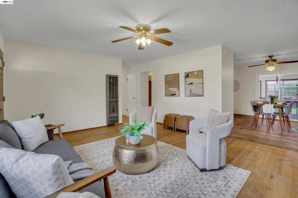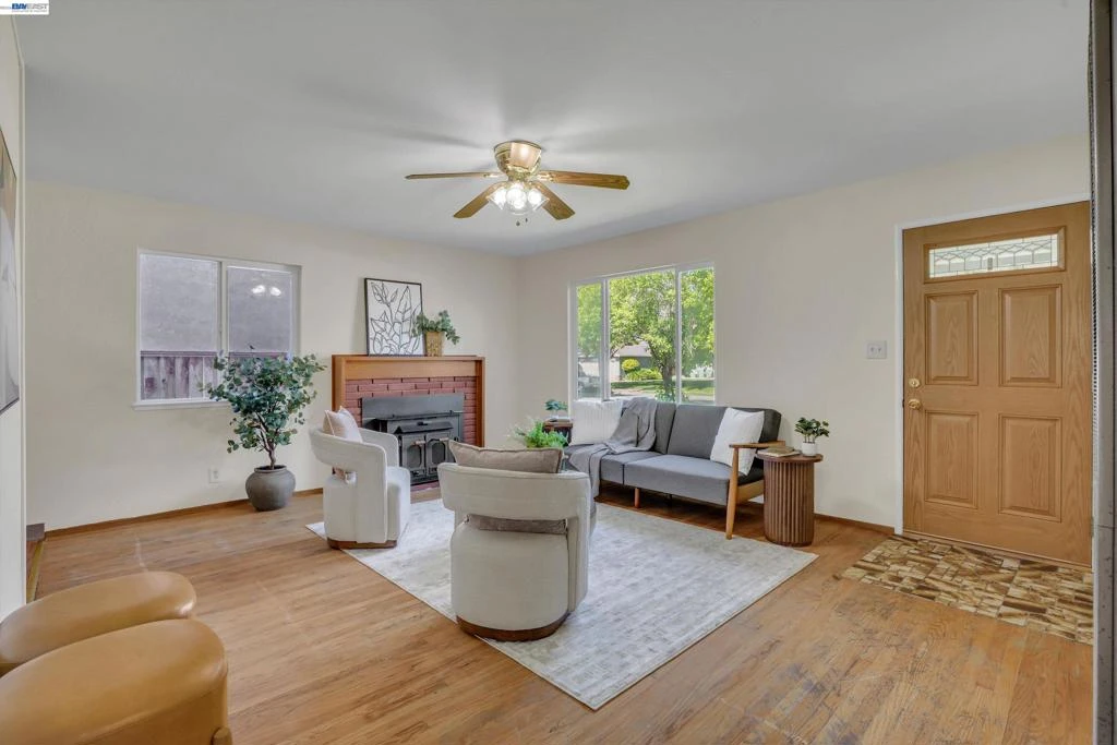 Welcome Home To This Sundale Charmer That’s Been Waiting For You! Bright and Open Living Room with Original Hardwood Floors and Large Windows Filling the Space with Natural Light, Centered Around A Cozy Fireplace with Insert that Creates the Perfect Gathering Spot. The Dining and Kitchen Combo Offers Vinyl Flooring. All Bedrooms Feature Dual Pane Windows, Spacious Closets, and Lighted Ceiling Fans. The Hall Bathroom Has Been Thoughtfully Updated with New Shower and Matching Vanity. The Spacious Primary Suite Includes a Large Closet, Additional Storage Cabinets, and A Private Bathroom with Stall Shower and Extended Vanity. Enjoy Your Morning Coffee Or Unwind In the Evenings in the Inviting Sunroom. Low-Maintenance Front and Backyard Make Everyday Living Easy. Additional Upgrades Include New Interior and Exterior Paint, Fresh Black Tanbark in the Front Yard, and A Spacious 2-Car Garage. Prime Location Just Minutes from Top-Rated Schools, Pacific Commons, Fremont Hub, Kaiser and Washington Hospital, Plus Outdoor Favorites Like Quarry Lakes, Lake Elizabeth, and Irvington Park. Ideal For Commuters with Easy Access to 880, 84, 680, and Both Fremont BART Stations. Come See It for Yourself.