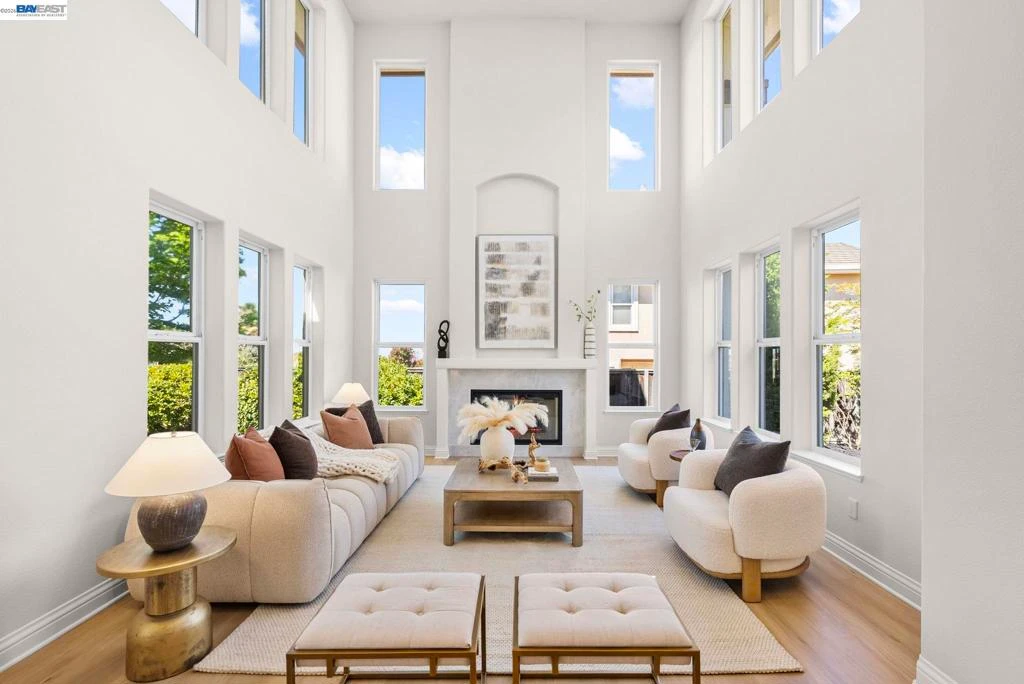Perched behind the gates of exclusive Avalon Heights, this refined two story home showcases sweeping bay views with dramatic hillside and city vistas. Set on a rare 21,666 sq ft premium lot with no rear neighbors, enjoy about 3,083 sq ft of light filled living with soaring ceilings, expansive windows, and effortless flow for entertaining. A coveted main level bedroom suite offers flexibility for guests or multi gen living. The formal living room with fireplace sets the tone, while the spacious family room invites relaxed luxury. Recent enhancements include premium wide plank luxury vinyl flooring on the main level, recessed LED lighting, a refreshed fireplace hearth, and a beautifully executed third car garage conversion, ideal for a gym, studio, or office. The chef’s kitchen shines with quartzite counters, designer ceramic tile backsplash, undermount sink, updated hardware, and Thermador appliances. Upstairs, the view wrapped primary suite is a true retreat with a remodeled spa inspired bath featuring a freestanding soaking tub and beautifully tiled shower. Outside, refreshed landscaping frames an expansive backyard for sunset dining and unforgettable gatherings. Minutes to top rated schools, leading tech campuses, and easy access to 680 and 880.