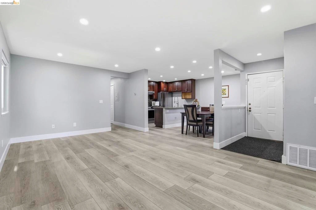 Welcome to your own peaceful retreat in the heart of Warm Springs. This TOP FLOOR END UNIT home is the LARGEST floor plan in the community at 1,214 sq ft. With no neighbors above, the home is filled with beautiful natural light, creating a calm and inviting atmosphere. The open layout flows seamlessly between the living, dining, and beautifully renovated kitchen, making it perfect for both everyday living and hosting.The kitchen has been thoughtfully upgraded with high-end appliances and modern finishes, creating a space that feels both elevated and welcoming. You’ll love the everyday comforts like central A/C and heating, new dual-pane windows. The spacious primary suite offers a relaxing escape with a large walk-in closet, while two private balconies (front and back) give you the perfect spots to enjoy your morning coffee or unwind at the end of the day. There’s also extra storage, an in-unit washer and dryer, a private garage, and additional assigned reserved parking. With a low HOA of $360/month and a prime location near top-rated schools, BART, I-680/880, plus great restaurants and shopping nearby. Come see it for yourself!