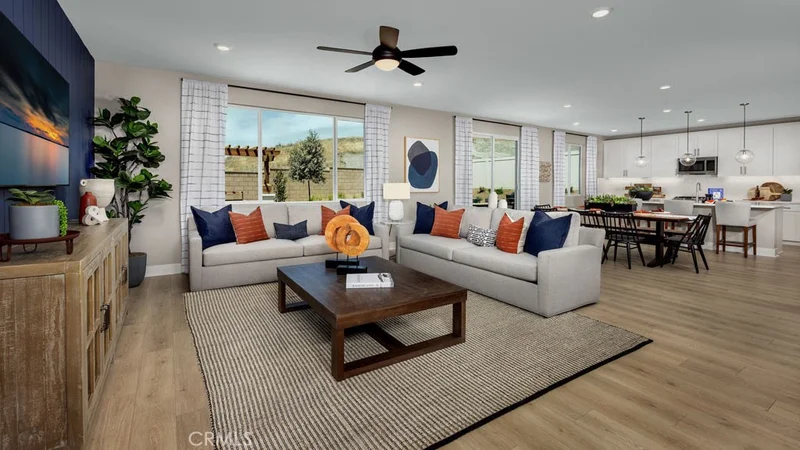 What's Special: Main Floor Bedroom | Close to Amenities | Loft | Large Kitchen Island. New Construction – Ready Now! Built by America's Most Trusted Home Builder. Welcome to the Plan 6 at 33340 Rusty Court in Rosa at Siena! With open concept living, dining, and kitchen spaces, this home creates a cozy and welcoming feel from the moment you step inside. The foyer opens to a kitchen with an oversized island that flows seamlessly into the casual dining area and great room. A secondary bedroom is situated at the front of the home with easy access to a full bathroom. Upstairs, a beautiful primary suite offers a relaxing retreat with an attached bathroom that includes a dual sink vanity and a roomy shower. The second floor also features two secondary bedrooms with a shared full bathroom, a cozy loft, and a convenient laundry room. Exciting things are taking shape at Rosa at Siena in French Valley, where sunshine and fun come naturally. Enjoy a sparkling pool, peaceful spa, tot lot, and nearby pickleball and basketball courts, a soccer field, BBQ areas, picnic spots, and trails. Zoned for the sought-after Temecula School District, with local vineyards, museums, and coffee shops close by. Additional Highlights Include: Fiberglass tub/shower suite in place of shower at primary bath, quartz countertops, upgraded flooring, and a kitchen backsplash. Photos are for representative purposes only. MLS#IG26030296