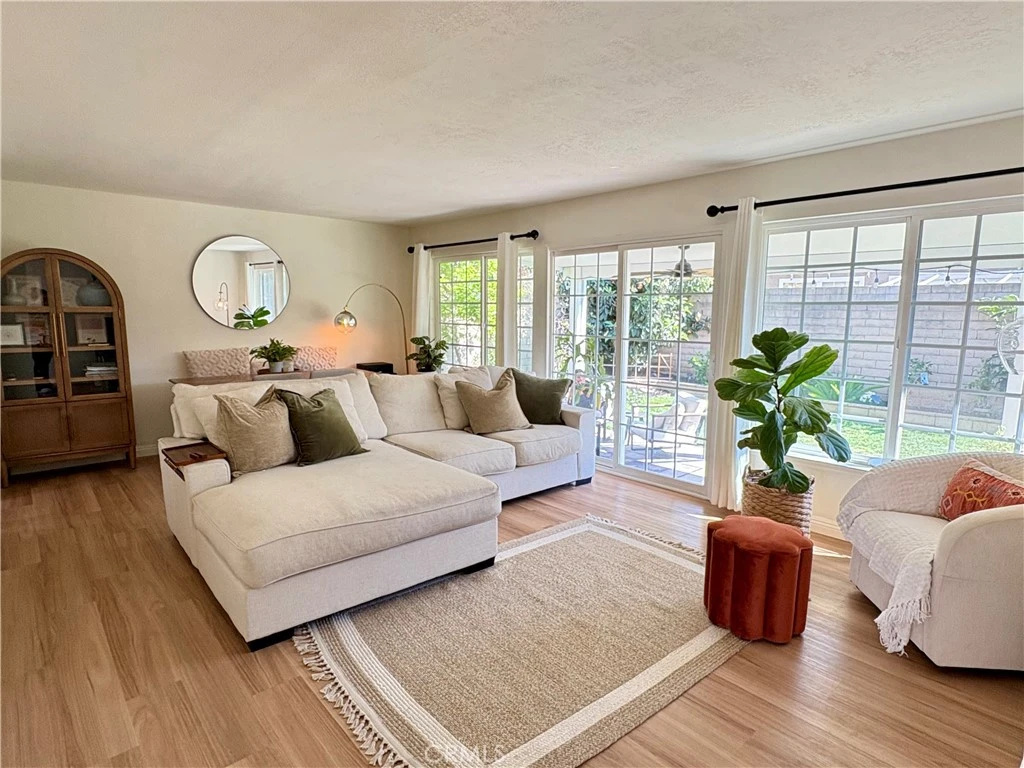 WELCOME TO THIS BEAUTIFULLY UPDATED SINGLE-STORY HOME IN THE HEART OF FULLERTON! This 3-bedroom, 2-bath home offers 1,242 square feet of living space and a perfect blend of modern improvements, functional living, and inviting outdoor space. Featuring over $50,000 in recent upgrades, including a new HVAC system, water heater, main sewer line replacement, bathroom re-pipe, new laundry setup in the garage, and a newly installed patio cover, along with fresh interior paint, luxury vinyl plank flooring throughout, an upgraded irrigation system, and newly installed backyard lawn. Situated on a spacious lot, 1200 W. Ash showcases a light and bright open-concept layout, with a seamless flow between the living and dining areas. Large windows and a sliding glass door fill the space with natural light and provide direct access to the backyard. The updated kitchen features quartz countertops, ample cabinetry, and newer appliances including a recently installed stove/oven and microwave. It also offers convenient access to a private gated courtyard that wraps around to the backyard, creating ideal indoor-outdoor living. A hallway with built-in storage leads to all three bedrooms and two full bathrooms. The spacious primary suite includes a large mirrored closet and an en-suite bathroom with a walk-in shower and vanity. Secondary bedrooms offer mirrored closet doors and large windows overlooking the backyard, while the secondary bathroom includes a walk-in shower and additional storage. The backyard is perfect for relaxing or entertaining, complete with a covered patio with outdoor fan, lush new grass, and a variety of mature fruit trees. The property also features an extended driveway leading to a two-car garage with washer and dryer hookups. Conveniently located near Downtown Fullerton, local parks, shopping, dining, and Cal State Fullerton. With extensive upgrades, versatile living spaces, and a desirable location, this move-in ready home presents a fantastic opportunity.