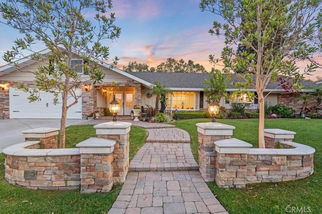 Located in the highly sought-after Sunny Hills neighborhood of Fullerton, this impeccably maintained single-level ranch-style home offers a rare combination of comfort, elegance, and resort-style living. Set on a sprawling nearly half-acre lot, the property showcases beautifully manicured landscaping, mature fruit trees, and an expansive lawn that creates a serene, park-like setting. Designed for seamless indoor-outdoor living, the backyard feels like a private retreat, complete with a large PebbleTec pool featuring a Baja step and sheer descent waterfalls, a cozy outdoor fireplace, and an expansive patio boasting recessed lighting, ceiling fans, ambient lighting, a television, and a BBQ island with a high-end grill plus a complimentary flat-top griddle. Extensive paver hardscaping extends from the front of the home to the backyard, enhancing both beauty and functionality. Inside, the home is filled with natural light and enhanced by thoughtful upgrades, including dual-pane windows, plantation shutters, crown molding throughout, recessed lighting, and BRAND NEW HVAC equipment. The spacious primary suite offers a large walk-in closet and a fully remodeled bathroom featuring custom cabinetry and an expansive walk-in shower. Guest bedrooms are privately situated and served by a beautifully remodeled full bathroom, offering comfort and separation for family or visitors. Elegant bay windows and a welcoming double-door entry add architectural charm, while multiple French doors with sidelights provide effortless access to the outdoor living spaces. Additional highlights include 33 fully paid solar panels and a newer 200-amp electrical panel, offering modern efficiency and peace of mind. A spacious bonus room above the garage provides valuable additional living space and is not included in the listed square footage, offering exceptional flexibility for a studio, office, or guest retreat. Situated in a charming, inviting neighborhood known for its award-winning schools, this home presents an exceptional opportunity to enjoy refined single-level living in one of Fullerton’s most desirable communities. Information deemed reliable; buyer to verify.