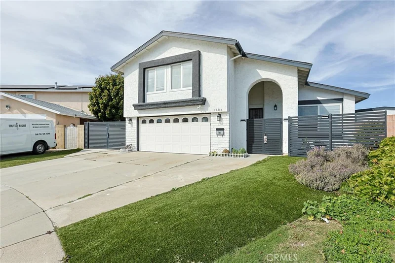 If you are looking for living or a vacation home in Southern California, this is the first choice to be the new owner of this estate just 2 miles away from one of the really famous places in the world, DISNEYLAND. Home has been totally upgraded, with an iron fence surrounding the front yard and RV gate. Single door entry of Cathedral home style with high ceiling and containing a bunch of designated chanticlear & lights, features 4 bedrooms, 2.5 bathrooms, huge living room and dining area. There is one bedroom and 1/2 bath for guests on the main floor; separate private kitchen with a lot of cabinets, tile and vinyl flooring throughout the house. Upstairs has 2 master bedrooms, plus all beautiful blinds & curtains on all windows & doors. The large back yard has a covered patio great for entertaining guests, with super clean and nice landscaping, 2 cars garage with a large driveway for 2 more cars and a RV that can drive through in the backyard. There is an upgraded tankless water heater. Located in the heart of Garden Grove, walking distance to Elementary & Middle School, Garden Grove Central Library, Church, Anaheim Resort, Anaheim convention Center, Great Wolf Lodge Water Park, Coastline College, Costco, Freeways 22 & 5.
