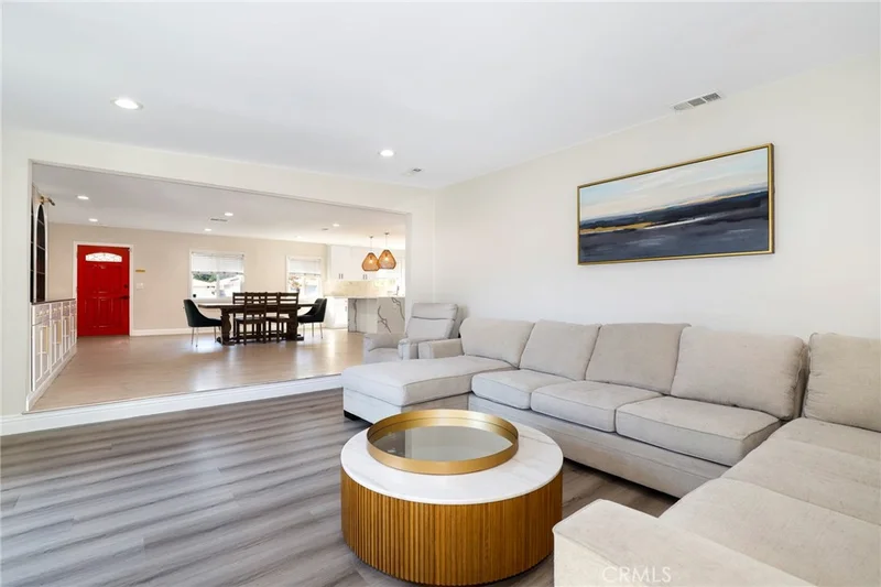 Welcome to this beautifully updated 4-bedroom, 2-bath home in the heart of Gardena, where modern design meets warmth and comfort. From the moment you step inside, you're greeted by an expansive open entry that flows seamlessly into a generously sized living and family room — perfect for both everyday living and effortless entertaining. A charming, working fireplace anchors the living room/den, creating the perfect focal point for cozy evenings and intimate gatherings. The home’s thoughtfully curated color palette of soothing earth tones — soft greens, tranquil blues, creamy neutrals, and crisp whites — enhances the inviting atmosphere throughout. The open-concept kitchen is the true heart of the home, featuring a stunning center island with an eating area, stylish light fixtures, and a layout designed for gathering. Whether hosting friends or enjoying a quiet morning coffee, this space delivers both beauty and function. Both bathrooms have been tastefully renovated with striking sage green tilework paired with elegant gold hardware, offering a spa-like feel with a modern edge. The main bedroom retreat is a showstopping step-down sanctuary with soaring ceilings that add depth and character, along with an oversized walk-in closet providing exceptional storage. Outside, you’ll find wonderful front and back yards offering ample space to relax, garden, or entertain. Fully gated for added privacy and peace of mind, this property combines comfort, style, and security in one inviting package. A truly special place to call home.