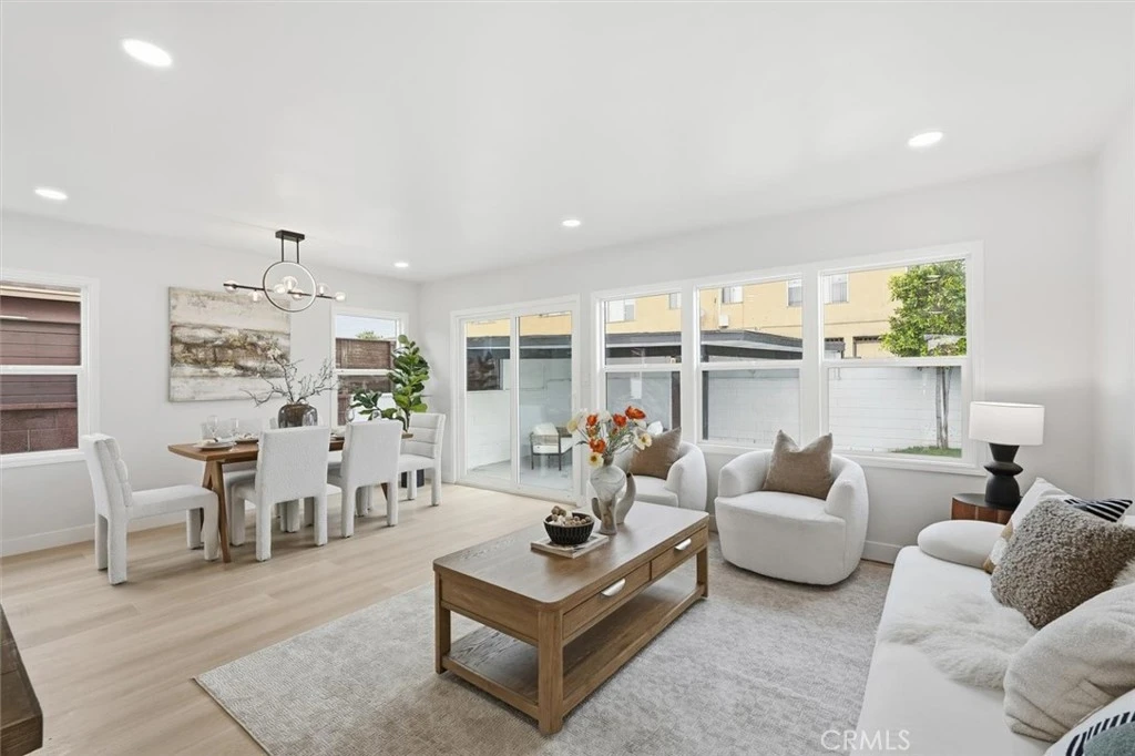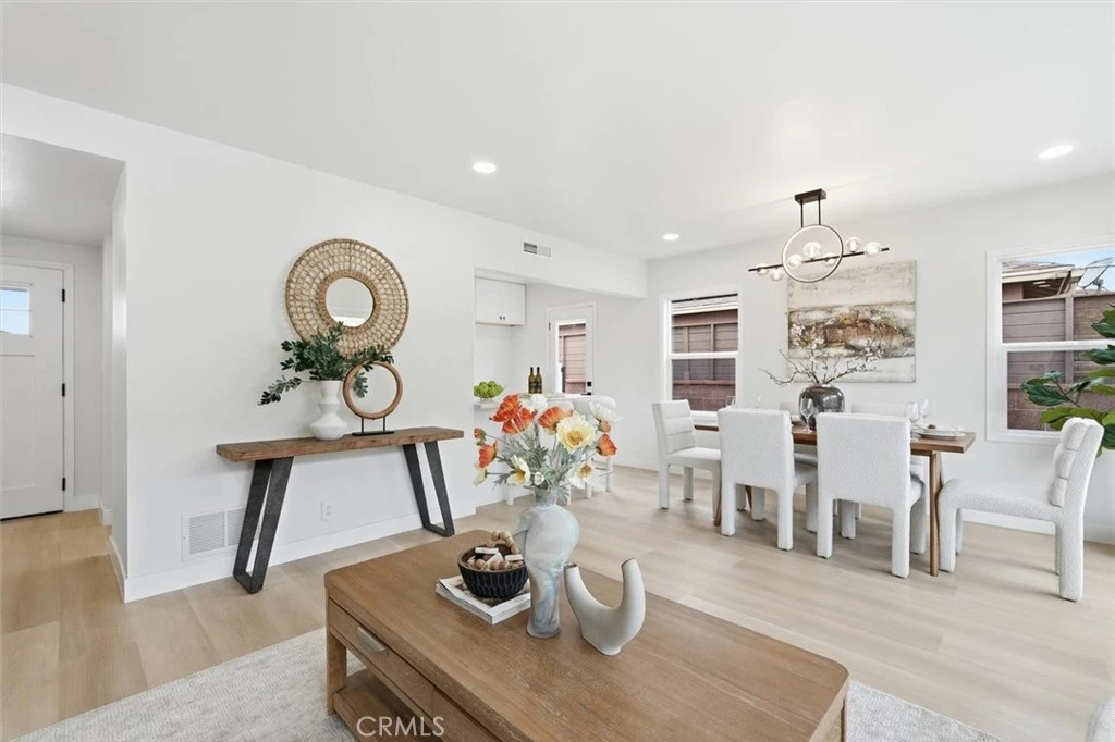 A luxurious upgrade from the classic California traditional house, this thoughtfully remodeled home delivers a sense of quiet sophistication through warm finishes, intentional design, and a layout that simply works. Set on a peaceful residential street, the home immediately feels welcoming, approachable in scale, yet elevated in execution. From the moment you arrive, the exterior sets a refined tone. Clean white siding, contrasting black accents, and subtle wood detailing create a modern, cohesive aesthetic. A generous front yard unfolds into a beautifully constructed deck, an inviting extension of the living space that feels equally suited for morning coffee, evening gatherings, or simply enjoying the neighborhood rhythm. The backyard offers privacy and ease, with mature greenery, open lawn, and a covered patio that naturally supports indoor-outdoor living. Inside, the home unfolds with a lightness that’s both visual and experiential. Natural light pours through new windows and glass doors, highlighting the wide-plank wood floors and creating a seamless flow from room to room. The living spaces feel open yet grounded, balancing connection with comfort. Thoughtful details: custom shelving, a built-in workstation, and carefully selected lighting, add function without disrupting the home’s calm, cohesive feel. The kitchen anchors the space with understated elegance. Crisp cabinetry, veined stone countertops, and a warm herringbone backsplash strike a balance between modern polish and livable design. It’s a space designed for everyday use but elevated enough to host effortlessly, clean sightlines, quality appliances, and finishes that feel timeless rather than trendy. The bathrooms continue the home’s relaxed, elevated sensibility, finished with spa-inspired materials, rain showers, and soft, natural textures that create a sense of retreat. Throughout the home, the bedrooms feel private and restful, offering flexibility for work, guests, or quiet downtime, all enhanced by thoughtful storage and lighting choices. Beyond what’s immediately visible, meaningful system upgrades, including HVAC, electrical, and windows, support the home’s turnkey nature and long-term comfort. The result is a residence that doesn’t ask for compromise: design-forward yet functional, stylish yet warm, and ready to be lived in from day one. The location supports an effortless lifestyle—tucked away enough to feel serene, yet close enough to stay seamlessly connected.