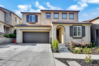 Discover the charm of this Creekside home in the golf course community of Eagle Ridge! Showcasing a striking Mediterranean-inspired exterior with a distinctive rock facade, this home is ideally located just steps from the community park and pool--perfect for family fun and proximity to many of the Eagle Ridge activities! This inviting home features rich LVP flooring on the 1st floor, Andersen French doors and plantation shutters throughout. A versatile front living room with French doors can serve as a home office or guest bedroom. The formal dining room with soaring ceilings opens to a spacious side courtyard, creating an ideal entertaining space. The gourmet kitchen offers granite slab countertops, Bosch stainless steel appliances, and a cozy breakfast nook with built-in hutch, all flowing into the family room with fireplace and entertainment niche. The well-designed floor plan includes 4 bedrooms and 3 full baths, with a convenient downstairs guest room and bath. Upstairs, a large loft with built-in entertainment center and bookcases provides flexible living space. The primary suite features a private French balcony and spa-like bath. Additional highlights include a stylish porte-cochère, leased solar, 3-car garage, and travertine hardscape, completing this pristine home.