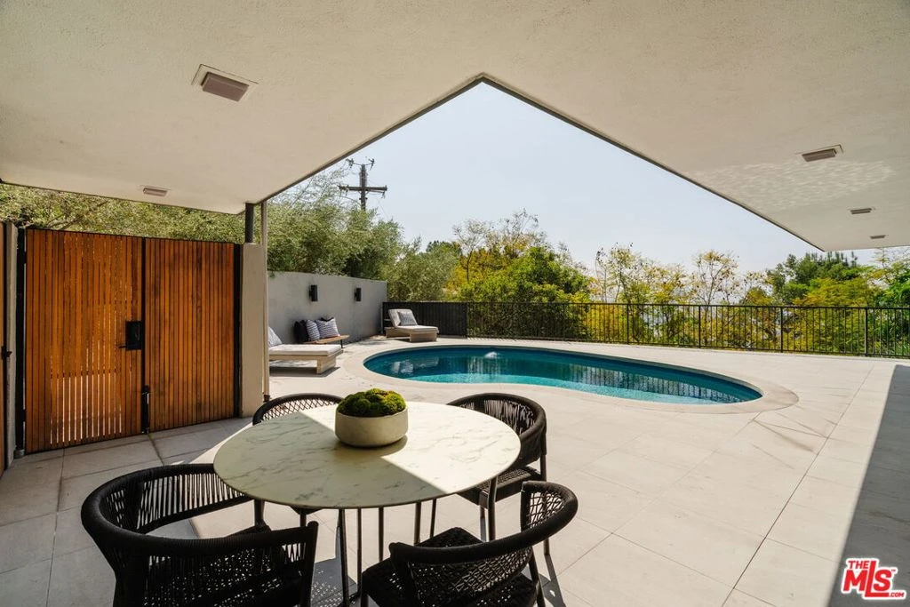 Nestled in Rossmoyne Hills, this updated mid-century modern home blends timeless design with thoughtful upgrades. Private redwood gates and lush landscaping create a serene, elevated entry. Inside, floor-to-ceiling Fleetwood glass doors open to a wraparound pool and patio with sweeping Los Angeles views, delivering seamless indoor-outdoor living. Reimagined living and family rooms feature a striking double-sided fireplace and wide-plank white oak floors.The kitchen is tastefully updated with Taj Mahal quartzite countertops, custom cabinetry, new flooring, stainless steel appliances, breakfast area, and laundry access. Three bedrooms and 1.75 baths are on the main level, including a primary suite with a spa-like bath, dual sinks, floating cabinetry, walk-in shower, and soaking tub.Lower-level bonus room ideal for office, gym, or media, plus storage and direct garage access. Close to The Americana at Brand, Glendale Galleria, Verdugo & Grand Park, and dining like Din Tai Fung. Rare offering in a premier Glendale neighborhood.