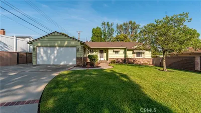 Great single family home on a cul-de-sac. Property consists of 3 bedrooms and 1 full bath. Living room, dining area, kitchen and an expansive family room with beamed ceiling and opens to the backyard. There is an enclosed patio. Spacious backyard offers mature landscaping and open patio which is perfect for entertaining. Backyard is a rectangular shape. Detached 2-car garage, Solar Panel is paid off and central air.