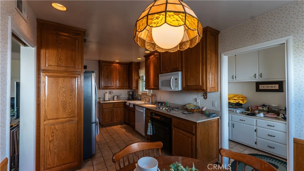 Welcome to this well-maintained single-story home in a desirable North Glendora neighborhood with beautiful foothill views. The home offers a spacious layout with original character and functional living spaces, including a generous living room with a classic brick fireplace, large windows, and an adjoining dining area. The kitchen features ample cabinet storage, tile countertops, built-in appliances, and a convenient layout with nearby access to additional storage and a bathroom. Original wood cabinetry and vintage details throughout reflect pride of ownership and offer an opportunity for customization. Bedrooms are comfortably sized, and the home provides a practical floor plan with good flow throughout. Outside, enjoy a wide driveway, attached two-car garage, mature landscaping, and a backyard with space for outdoor use or future enhancements. Conveniently located near parks, shopping, dining, and within the Glendora Unified School District.