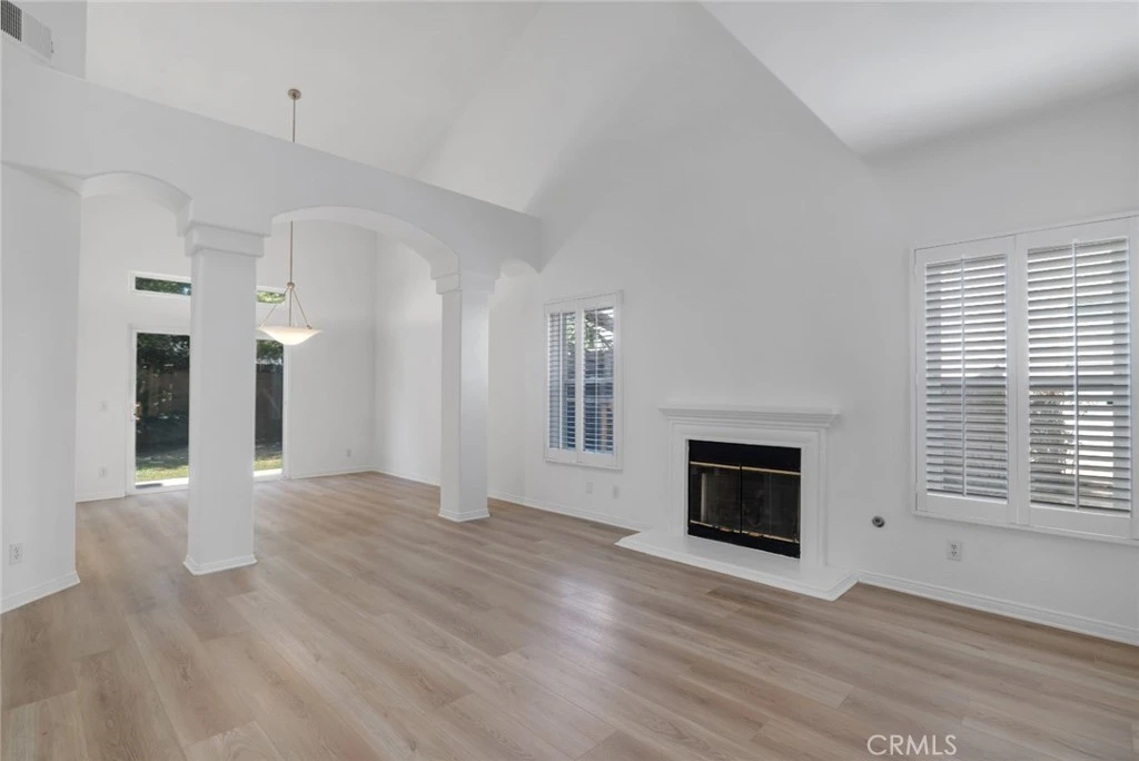 Set within a small privately maintained gated community in Granada Hills, this beautifully refreshed 4-bedroom, 3-bath home offers 2,352 sq ft of bright, airy living space with the feel of a stand-alone residence and the ease of a low-maintenance setting. A private front courtyard creates a welcoming space for landscaping or setting up a private spot for relaxing with morning coffee or a glass of wine in the evening. Inside, soaring vaulted ceilings, tall windows, plantation shutters, and an abundance of natural light give the home an open, uplifting feel from the moment you enter. The living room is both elegant and inviting, centered around a cozy fireplace and framed by a colonnade archway that defines the formal dining area, where a contemporary chandelier and sleek clerestory window add a stylish architectural touch. Fresh paint and new flooring throughout enhance the crisp, updated interior. The fresh, white kitchen feels especially cheerful and functional with recessed lighting, clean-lined cabinetry, white tile counters, breakfast bar seating, a walk-in pantry, and a sunny connection to the informal living area, creating a layout that works beautifully for both everyday life and casual entertaining. Sliding glass doors open to a sizable backyard with patio space, mature trees, and a grassy lawn, offering a private outdoor setting for dining, relaxing, or hosting friends. Upstairs, the impressive primary suite serves as a peaceful retreat with vaulted ceilings, an arched window, walk-in closet, and an en-suite bath with dual sinks, a soaking tub, and separate glass shower. Two additional secondary bedrooms are generously sized, and the fourth bedroom is currently arranged as an open loft overlooking the living area below, offering flexibility for a home office, den, or easy conversion to a true bedroom. With a dedicated laundry area, a convenient 3/4 bath on the main level, a full hall bath upstairs with dual sinks the home offers convenience and versatility to utilize to your preference. The excellent Granada Hills location close to shopping, dining, award winning schools, including Granada Hills Charter, and commuter routes make the location of the home unbeatable. This home blends warmth, light, and livability in a setting that feels both private and connected. Don’t miss out!