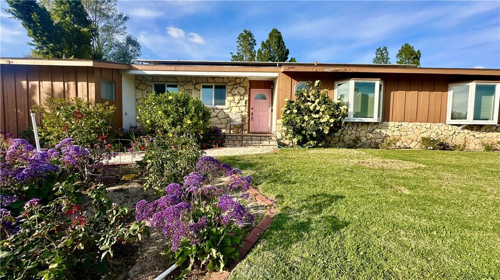 Welcome to 17439 Donmetz Street, nestled on an expansive approx. 17,500 sq. ft. lot with beautiful park-like grounds, ideally located in the heart of “Old Granada Hills” known for large lots and high desirability. Situated within the highly sought-after Granada Hills Charter High School district, this single-story home offers the perfect blend of comfort, charm, and convenience. Impressive curb appeal sets the tone for what awaits inside. This 4 bedroom, 3 bath residence features warm wood flooring, vaulted wood beamed ceilings and a cozy fireplace in the living room, and an expansive formal dining room/family room ideal for both everyday living and entertaining. The bright kitchen has tile countertops, tons of cabinetry, built-in appliances, a charming breakfast nook, and an oversized laundry room / storage pantry - Ideal for any home chef. The spacious primary suite offers a peaceful retreat, complete with a his & her closet and an en-suite bath with access to one of the secondary bedrooms – which is perfect for a nursery or home office. There is 2nd / Jr. Primary suite with a private bathroom - making it perfect for extended family or the in-laws. Step outside to the true showpiece of this property - a spectacular backyard oasis that feels like your own private park and the grounds are bursting with flowering plants, mature greenery, and pathways that invite you to explore and unwind. The lush landscaping creates beauty in every direction and a sense of complete serenity. A large brick patio provides the perfect setting for outdoor dining, entertaining, or simply relaxing while enjoying the tranquil surroundings. Additional highlights include a long-gated driveway leading to an oversized 3 car garage with room for RV parking, central air and heat, dual-pane windows, smooth ceilings and seller owned - energy saving solar panels. Ideally located just minutes from easy access to 118 freeway, parks, shopping, dining, and more.