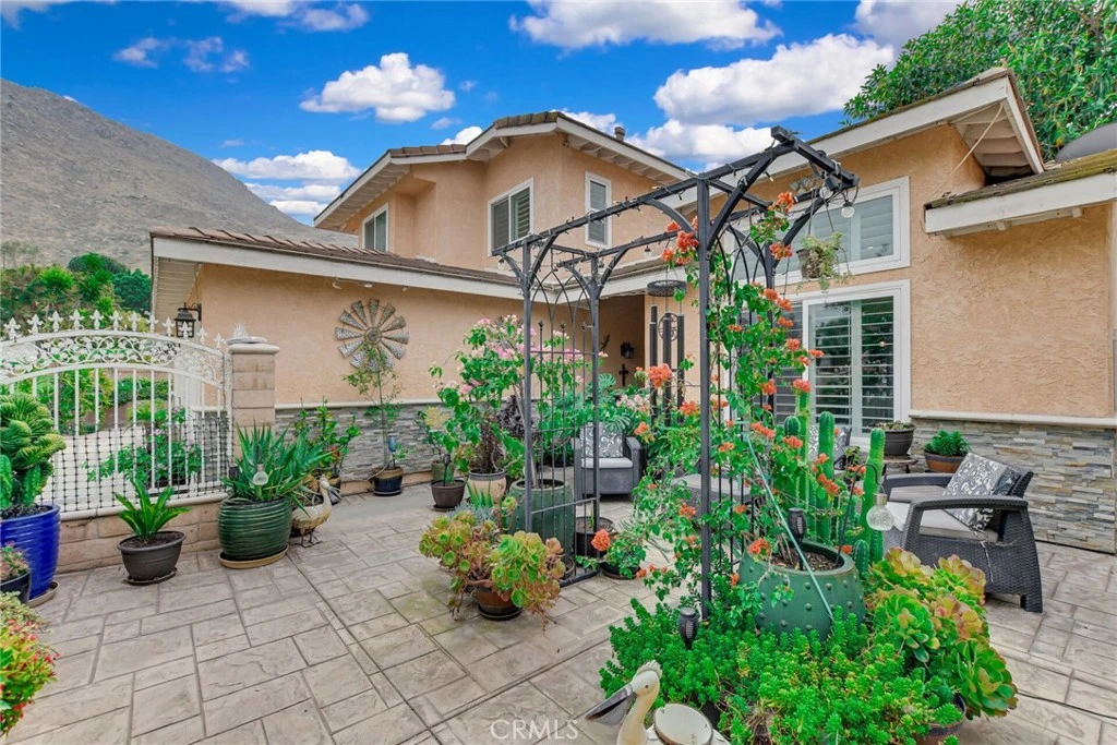 This is a truly unique, special, one of a kind and highly upgraded home, nestled at the base of Grand Terrace Blue Hills. The floor plan has been modified to create an open concept living room, kitchen and dining room areas that are great for entertaining. And the downstairs bedroom has been turned into an attached next-gen suite, great for older adult parents, grandparents or adult kids, comprised of a bedroom, mini attached living room and 3/4 bath with a walk in shower. Incredible opportunity here for any extended family living needs/situations. There are multiple out door living spaces with a backyard covered patio area, a backyard balcony that takes advantage of the views of the Azure Hills nearby and even a front yard gated brick paver, courtyard patio to lounge in and take advantage of the greenery around the home. Too many upgrades to list here including: vaulted ceilings in living room and master bedroom suite, ceiling lights/fans in all the bedrooms, recessed LED lights & Plantation Shutters throughout the house, 5 ton 15 seer central air system, bamboo wood and marble flooring throughout, granite and marble counters in all the bathrooms and kitchen, custom built cabinetry in all the bathrooms and kitchen with lots of extra storage, custom hanging light fixtures, all appliances are included plus an extra fridge and freezer in the garage, glass basin sinks with glass tile and travertine tile at walls in bathrooms. In the backyard surrounded by block walls there is a cactus garden, vegetable garden and herb garden plus storage shed that stay. The owner has receipts for over 100K of upgrades that were recently done to the home. Make your appointment now to see this wonderful home that is the epitome of true pride of ownership.