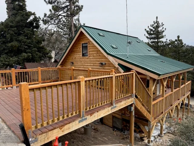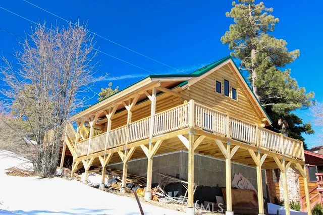 Here is Your Rare Opportunity to own this charming true log cabin which offers a peaceful retreat in the heart of the mountain resort of Green Valley Lake. Surrounded by towering pines and panoramic vistas, cabin boasts breathtaking views of the rugged peaks and serene valleys. This two bedroom layout complemented by a cozy loft bedroom provides plenty of space for relaxation and hosting family events. The rustic log architecture features kiln-dried pressure treated wood finishes, vaulted ceilings and large windows that flood the space with natural light, offering a seamless blend of indoor comfort and outdoor beauty. This is one-of-a-kind custom home in Green Valley Lake, that also features a fire retardant metal roof and a Fire Suppression sprinkler system throughout the home. The community adds to the appeal with access to a private lake, perfect for fishing, kayaking, boating and swimming or simply enjoying the tranquil setting. Buyers may continue the construction on the unfinished basement adding approximately another 700+ square feet. This is a must see home!