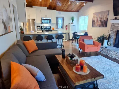 Unlock the full potential of this incredible cabin in the Green Valley Lake Community, where lake rights and endless amenities await. With title showing 432 square feet, but feeling like a much larger 750 square feet, this property offers ample space to live, play, and relax. Recent renovations have transformed the interior and exterior with a newer roof, modern kitchen, and stylish finishes. Make the most of lake life with activities like swimming, fishing, and boating, and enjoy the convenience of being just 20 minutes from Snow Valley. Lease considered.