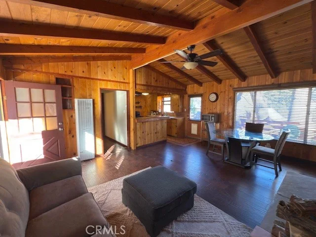 Beamed Ceilings, Ceiling Fans, Cathedral Ceilings, High Ceilings, Laminate Counters, Open Floorplan, Bedroom On Main Level, Galley Kitchen, Main Level Primary, Walk In Closets