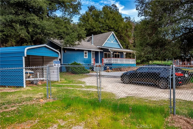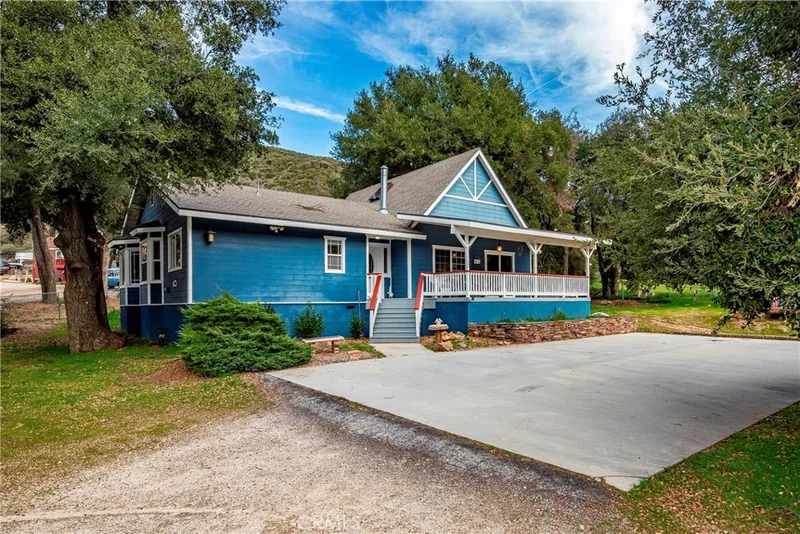Small town charm and privacy meets artistic elegance! Run, don’t walk, to this opportunity to make this one-of-a-kind oasis located on over ¾ of an acre of fully fenced flat usable land (includes two parcels) your very own home sweet home! Some stand-out features of this great property include 3 bedrooms and 2 full bathrooms, plus a private upstairs loft that could be utilized as an additional bedroom, office, or theatre/game room. The back bedroom has its own private entrance, and is located very close to the 2nd bathroom & laundry room. The master suite is spacious with an ensuite, large walk-in closet, and a beautiful Bay window with sitting/storage bench. The large kitchen has been remodeled in recent years with gorgeous granite countertops and a bay window framing your scenic view above the kitchen sink. The kitchen opens up to the dining area (with it’s own sliding glass door to the front veranda) & living room with an efficient & stylish parlor pellet stove & real wood walls, giving the feeling of true country comfort. There’s a newer front door, a tankless water heater, and a NEST climate control provides comfort convenience. Outside you have the notable “Dirty Dog” venue, which is a gathering place for outdoor entertaining & barbeques, and has been used for wedding photos. The property also features three spacious storage sheds, a covered carport, and a large cement slab for pull-up parking directly in front of the home. Your grand front southern-style veranda offers plenty of hang-out sitting space while enjoying the surrounding views, along with a large side stairway up to your home entrance. Located around 1/2 hour drive to either Santa Clarita or Palmdale, you get the best of both worlds. All the details of this fine property must be seen and felt in person to truly get the full ambiance of what this welcoming home provides.