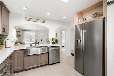 Beautifully updated 3-bedroom, 2-bath home, ideally located just a few blocks from the beach on a spacious R2 lot. Whether you're seeking multi-generational living or an opportunity to offset your mortgage with rental income, this property offers exceptional flexibility. The front of the home welcomes you with a bright, open-concept kitchen designed to impress—featuring quartz countertops, solid wood cabinetry, a farmhouse-style stainless steel sink, sleek tile backsplash, and a large skylight that fills the space with natural light. Two well-appointed bedrooms and a full bathroom with a solid wood vanity complete this section, with one bedroom offering direct access to a private patio. The back of the home opens up to a stunning flex space with its own private entrance—perfect as a guest suite, second living area, or oversized primary retreat. This inviting space showcases exposed wood beam ceilings, a cozy tile fireplace, and seamless indoor-outdoor flow to an expansive back deck. The generously sized back bedroom features new French doors and west-facing exposure, capturing ocean breezes and sunset light. An updated kitchenette with stainless steel appliances and subway tile backsplash adds even more convenience. Unwind in the spa-inspired bathroom, complete with a double farmhouse vanity and a walk-in rain shower. Additional highlights include a dedicated laundry room, multiple French doors leading to the backyard, and peek-a-boo ocean and dune views—with potential for panoramic ocean vistas from a future second story (buyer to verify). Upgrades throughout include Milgard Tuscany windows and doors, luxury vinyl plank flooring, recessed lighting, modern fixtures, and dual energy-efficient HVAC systems for independent climate control. Outside is an entertainer’s dream backyard—featuring a covered dining patio, built-in BBQ area with smoker, warming drawer, and beverage refrigerator, plus a spacious seating area ideal for a fire pit. The lush lawn provides plenty of room for outdoor activities and relaxation. A rare opportunity to enjoy coastal living with built-in flexibility and future potential—schedule your private showing today!