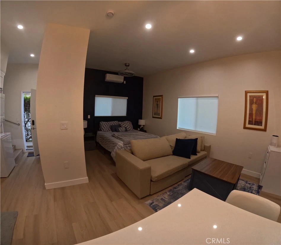 Beautifully built brand-new construction studio located in a quiet residential neighborhood of Hawthorne. This modern, fully furnished unit features an open floor plan with high-end finishes throughout. The kitchen offers white shaker cabinets, quartz countertops, tile backsplash, stainless steel appliances including a refrigerator, dishwasher, stove, and microwave. Enjoy the convenience of an in-unit washer and dryer and plenty of storage space. The bathroom is elegantly designed with a glass-enclosed shower/tub combo, contemporary vanity, and designer tile work. Additional features include mini-split air conditioning and heating, tankless water heater, new lighting fixtures, and wood-style flooring throughout. One parking space is included on the driveway. Everything in this unit is brand new—move-in ready and thoughtfully designed for modern living. Close proximity to freeways, shopping, dining, and LAX.