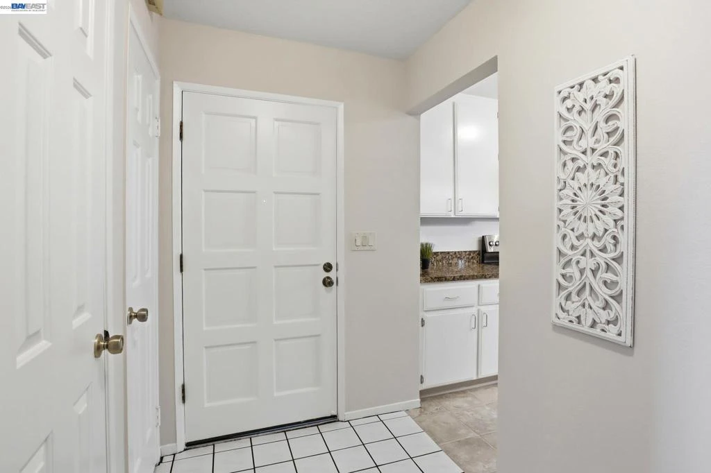 This bright and inviting upper end-unit offers a rare combination of privacy, natural light, and thoughtful upgrades. The living room has soaring vaulted ceilings and a sliding glass door opens to a generous balcony overlooking mature trees and a peaceful natural setting—an ideal spot to relax and unwind. The updated kitchen features granite countertops, stainless steel appliances, and a built-in microwave, blending style with everyday functionality. Recent improvements include updated sliding door and several windows, fresh interior paint, newer carpet and balcony storage door. Additional highlights include in-unit washer and dryer, a one-car garage with storage cabinet and an additional uncovered parking space (permit fee). Located in the Mesa Verde gated community, residents enjoy access to multiple pools, clubhouse, tennis courts, exercise equipment and lush landscaped grounds filled with mature trees and vibrant flowers.. Conveniently located on the border of Castro Valley allowing quick access to BART, major highways, shopping, dining and all the East Bay has to offer.