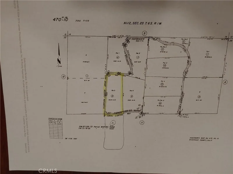 18.52 acres of raw land in rolling hills. Border of Hemet and Temecula Pixley Canyon area of Sage. Lots of land with views of Diamond Valley Reservoir and Hemet Valley. Closest neighbor is Temecula Hills Winery and has possibility of water well. Can grow grapes or agriculture. Scorpion Canyon Road is off of DePortola. From the North of Dominguez Parkway, take state street up the hill which turns into DePortola. Go left on Hemet Ranch Road, turn right on Lawghlin Rd, and turn right on Coral Canyon Way. It is in the valley below just over the hill from Temecula's Wine Country. Can also access lot 6 from the bottom by taking State street which turns into Deportola, go left at Saddleridge Road, than right on Pixley Canyon Road and go about a mile past Benji Road and it ends at lot 6. There is a stream and small waterfall on the lot. There are about 3 acres of rolling hills that are build able and majority of lot is slopped and good for growers. Very private location in between Riverside County Land Conservatory.