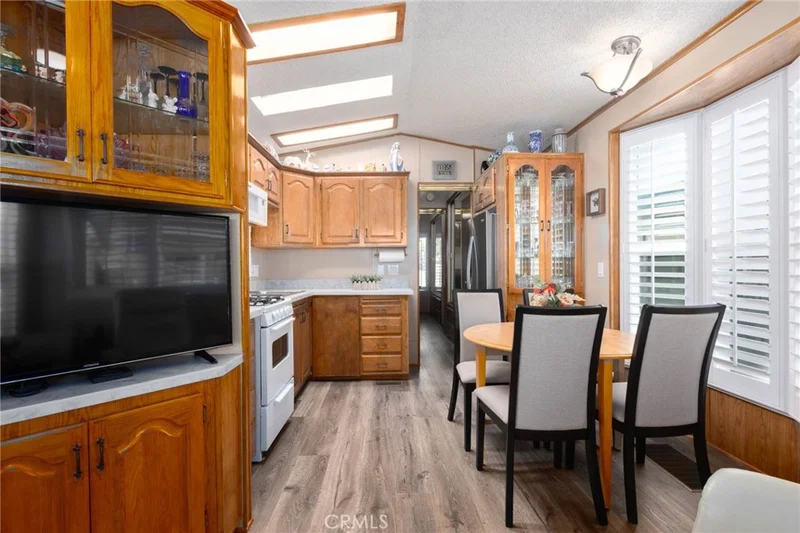 Set in the gated 55+ resort community of Mountain Shadows, you OWN the land beneath your home with NO space rent. This stylish and TURNKEY 1 bedroom home with huge bonus room is an entertainer’s delight. Home has been remodeled top to bottom showcasing the elegant interior and open floor plan. Newer skylights, ceiling fans, and lighting fixtures are featured throughout the home. The home is appointed with natural looking wood like flooring. Your chef will appreciate the gas stove, refrigerator and custom Quartz countertops with backsplash. So much storage inside and out. The exterior showcases 6 foot vinyl fencing and easy-to-maintain hardscape so you can spend more time enjoying the sunsets and all this resort community has to offer. Once you step outside, relax under the expansive wraparound covered deck suitable for entertaining and taking in the mountain views. The newly painted shed includes custom closets, washer and dryer hookups and so much storage space. Check out the supplements to see ALL the updates. This fantastic 55+ community features state of the art amenities including pool, spa, club house, many events for the active lifestyle: Community dinners, dances, and Saturday Breakfast. So much to do in this gated resort community. HOA $293/month and covers water, sewer, trash, wifi and cable. This scenic oasis awaits you.