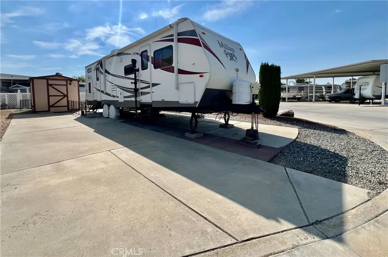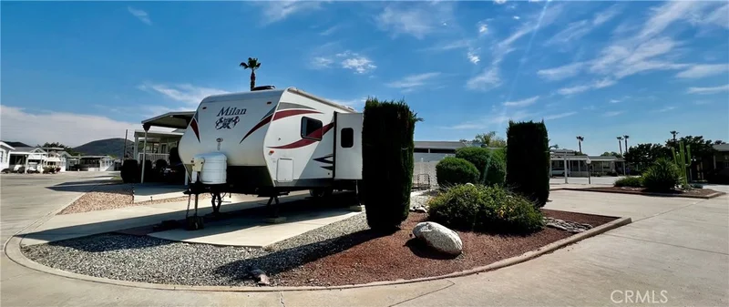 OWN YOUR LAND! Desired Mt shadows RV Resort Gated 55+ Senior Community. Charming 2013 Milan Eclipse Recreational Travel Trailer Included With An Electric Lift Max Capacity Of 300 LBS To The Front Door Entrance. Beautiful Cherrywood Cabinetry, Refrigerator, Microwave, Propane Cook Top & Oven. Master Bedroom Has His & Hers Closets, TV Can Be Watched From The Living Room & Bedroom. Living Room Area Has A Couch & Kitchen Table That Can Be Made Into Beds & Guest Bedroom Has Four Bunk Beds & Extra Storage Cabinets. Bathroom Has A Step In Shower Stall And Access To The Back Door. Storage Shed Has Been Repaired & Painted. Located On A Corner Lot With Great Views Of The Mountains. Extra Guest Parking At The Side & Across The Street From The Property Makes The Location Very Desirable. Two Clubhouses To Choose From & Close Distance To The Main Clubhouse With Many Amenities To Choose From Including Heated Salt Water Pool, Spas, Billiards Room, Shuffle Board, Picnic Area, Gathering Areas, Large Community Kitchens, Exercise Rooms, Rest Rooms & Showers, Laundry Rooms, Horse Shoe Pit, Ping Pong Tables, Corn Hole & More. The Association Has Committees That Plan & Organize Several Activities From Luncheons, Excercise Classes, Special Occasion Dinners, Matinees, Bingo, Karaoke And Much More. Great For Commuting To Temecula Wine Country, Mountains, Beaches & Minutes From Diamond Valley Lake. LOW TAXES & HOA FEES Of Approx $243.65 Includes Water, Sewer, Trash Basic Cable & Internet. Resort Living At It's Finest!
