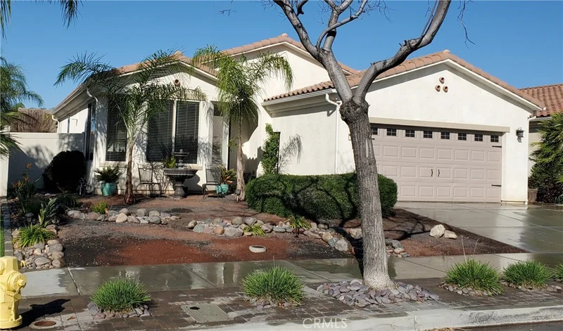 The Del Webb name says it all, Luxury & Amenities! At Solera Diamond Valley, it's like vacation every day. This is a 55+ community where you can be as active as you want or as relaxed as you need. Come and see this beautiful 2 Bedroom / 2 Bathroom home in the heart of beautiful West Hemet near the Diamond Valley Reservoir, great golf courses and a short drive to the Temecula Wine Country. This is a truly one-of-a-kind home with many custom upgrades. The primary bedroom suite has a tray ceiling, an actual walk-in/roll-in shower and a separate soaking tub as well as, generous walk-in closet. The spacious kitchen has granite counters. a large panty and a bay window dining area overlooking the front yard fountain. It also offers a breakfast bar with custom pendant lighting for your enjoyment. There are custom ceiling fans throughout and a Quiet Cool Whole House Fan. Step outside to the back patio where you will likely want to kick off your shoes and sit right down and enjoy your favorite game or movie on your 75" TV mounted within the designed stone fireplace feature. Close the curtains for privacy and an afternoon nap or open them wide to entertain family and friends. This home has 2 water features that operate conveniently by switch; the hummingbirds love them and provide quite a show as they play around them. Speaking of playing around, join in the events, clubs and activities of the Mountain View Lodge to your heart's content. Face it, this is the good life you've been waiting for, and this home is PRICED TO SELL! Make it yours today! More photos, and showing opportunities, coming soon,