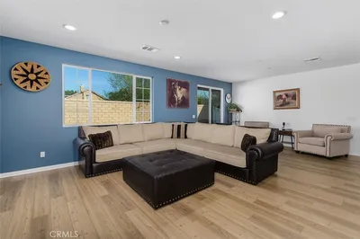 Nestled within the tranquil Saddle Point cul de sac, this elegantly appointed single story residence combines refined design with modern comfort. A bright, open floor plan is enhanced by luxury vinyl flooring and abundant natural light, creating an inviting sense of space from the moment you enter. The gourmet kitchen showcases an expansive granite breakfast bar with seating for six, upgraded cabinetry with bespoke hardware, generous counter space, GE appliances, and impressive pantry. Seamlessly connected to the great room, it opens through a wide sliding glass door to the thoughtfully designed backyard—perfect for effortless indoor outdoor entertaining. The sophisticated owner’s suite features custom draperies, an adult height dual sink vanity, an oversized spa style shower with a hand-held rain system, and a beautifully organized closet. Secondary bedrooms offer generous proportions, while the oversized indoor laundry room provides exceptional storage and functionality. The landscaped backyard includes inlaid pavers, block and vinyl fencing, a lush lawn, and raised planters ideal for a flourishing garden. Additional enhancements include a 7 panel solar system, warm designer paint tones, a private lot with no rear neighbors, and a comprehensive sprinkler and drip system. Residents enjoy access to community amenities such as walking paths, a playground, picnic areas, and a resort style pool. The current Homeowner's Insurance policy is at a very low rate with full coverage.