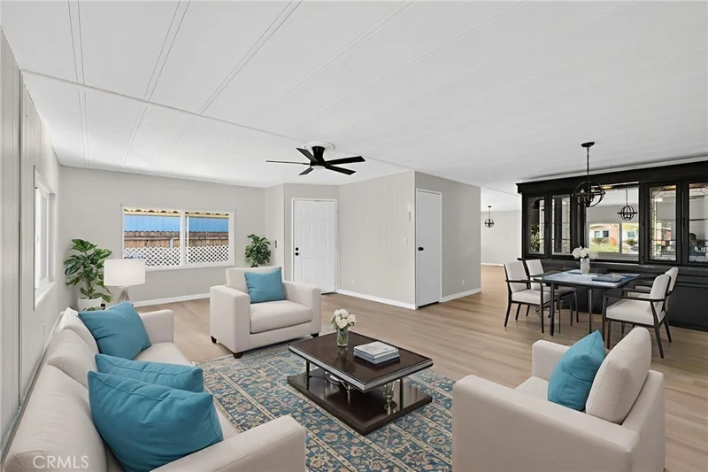 FHA Offers can be accepted after March 8th, All other financing welcome now. This beautifully updated 2026 home is located in the desirable Monte Vista Estates East 55+ community. Featuring 2 bedrooms, 2 bathrooms, and a 2-car garage, this home blends comfort, efficiency, and style in a peaceful setting. Enjoy brand-new energy-efficient windows and luxury vinyl plank flooring throughout. The upgraded kitchen showcases quartz countertops, custom cabinetry, stainless steel appliances, a dishwasher, and a gas range with ventilation hood, all designed with an open, modern layout. The home offers a formal living room, dining area, and spacious family room, providing plenty of space for relaxing or entertaining. Two large covered patios spanning the length of the home create exceptional shaded outdoor living space. The fully landscaped yard features a mix of low-maintenance plants and concrete hardscaping, plus a storage shed and several mature citrus trees in the backyard. This may be one of the nicest homes in the community. Schedule your tour today and explore the floor plan and 3D walkthrough for a complete virtual experience.